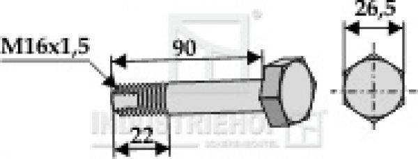 Schraube M16 X1.5 X 90 SW27 mm für Howard Mulcher Technische Datem: Best.-Nr. 63-SEP-91 Gewicht 0,177 kg M16 X 1.5 X 90mm Schlüsselweite 27 mm Festigkeit 10.9 Gewindelänge 22 mm Artikel passend für Fabrikat: Howard Mc Connel Seppi Obenstehende Original Ersatzteilnummern dienen ausschließlich zu Verg