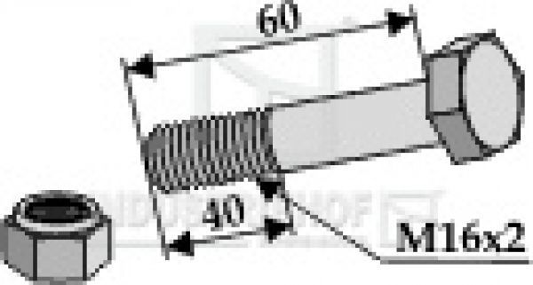 Schraube M16x2x60mm 10.9 mit Mutter passend für Kuhn Mulcher