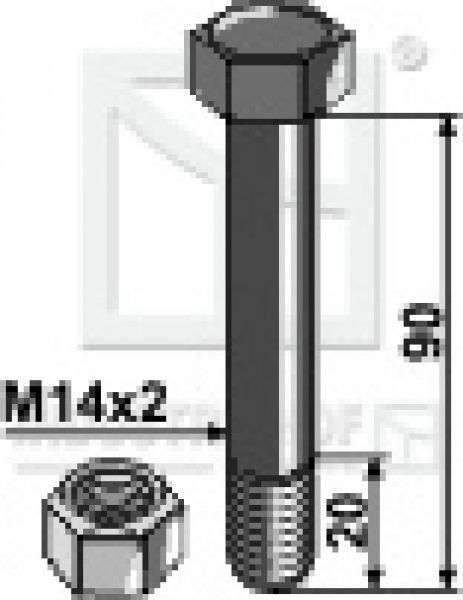 Schraube mit Mutter M14 x 2 x 90 mm für Müthing Mulcher