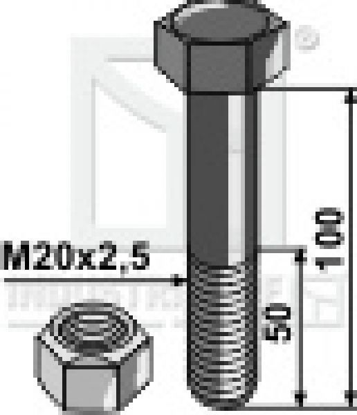 Schraube mit Sicherungsmutter 63-20100 M20x2.5x100 10.9