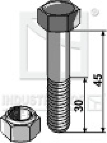 Schraube mit Sicherungsmutter M12 X 1.75 X 45 10.9 für Kverneland Mulcher