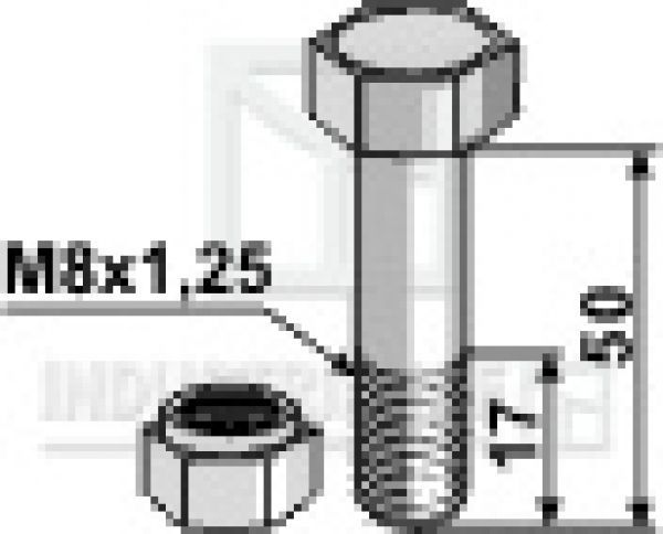 Schraube mit Sicherungsmutter M8 x 50 mm 10.9 passend für Agria, Lipco Mulcher