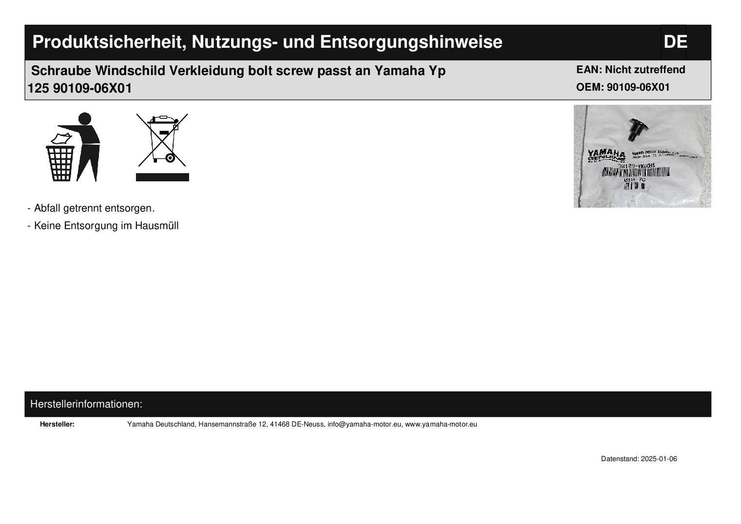 Schraube Windschild Verkleidung bolt screw passt an Yamaha Yp 125 90109-06X01