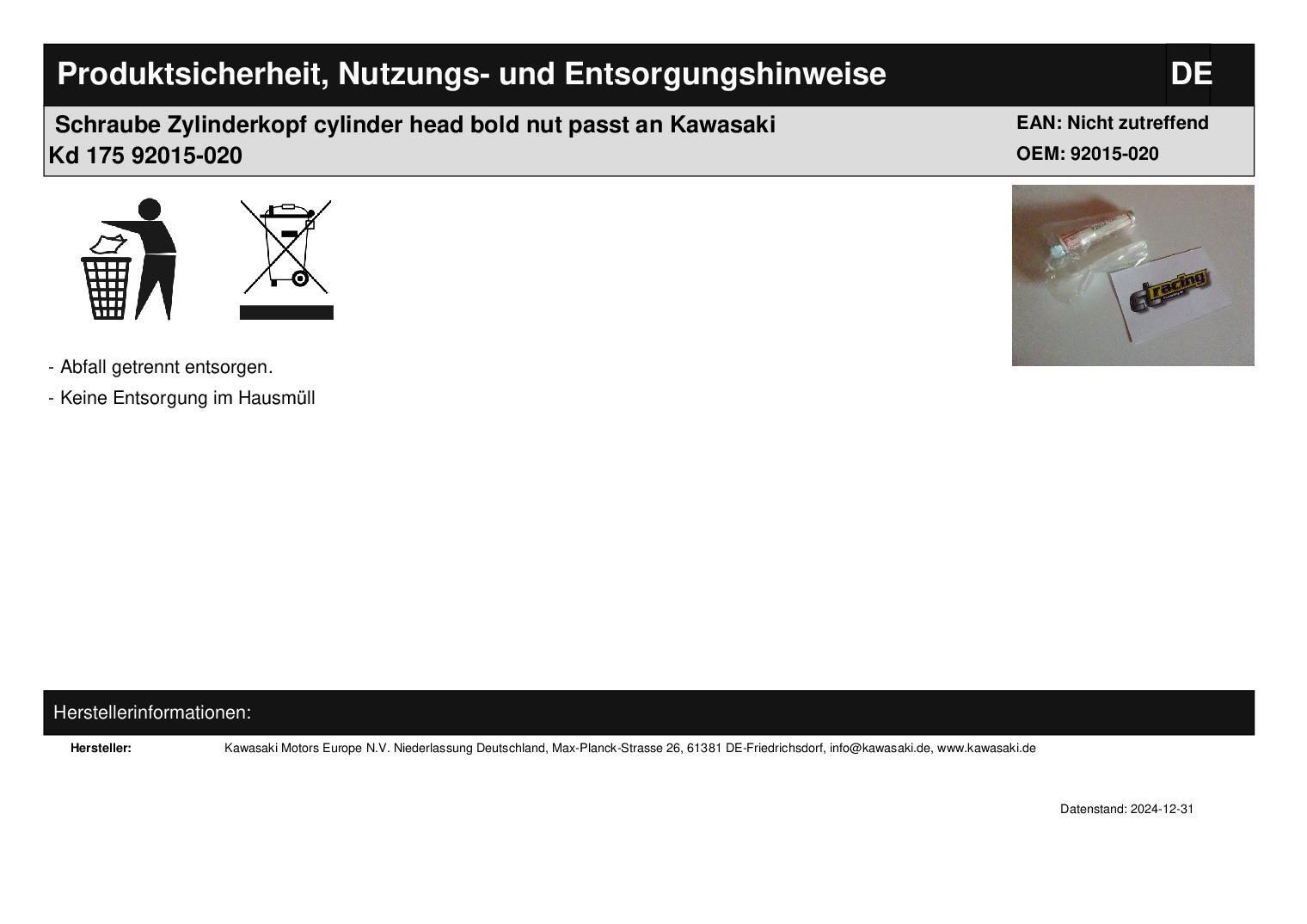 Schraube Zylinderkopf cylinder head bold nut passt an Kawasaki Kd 175 92015-020 In dieser Auktion gibt es folgenden Artikel zu kaufen: Schraube (siehe Foto) Modell: passend für Kawasaki KD 175 Bj.: 76 KX 125 Bj.: 74 Lieferumfang: 1 Stück Artikelzustand: neu aus Geschäftsauflösung, mit minimalen Lage