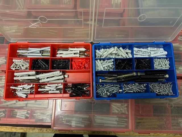 Abverkauf 1 Palette 250 Stück Sortimente Schrauben und Dübel Sortimente im Koffer, blau und rot - Fachhandel seit über 30 Jahren - Warenversand aus Deutschland - Bitte beachten Sie auch unsere weiteren Artikel - Weitere Artikel und Abmessungen auf Anfrage - Der Umwelt zuliebe verwenden wir Verpackun