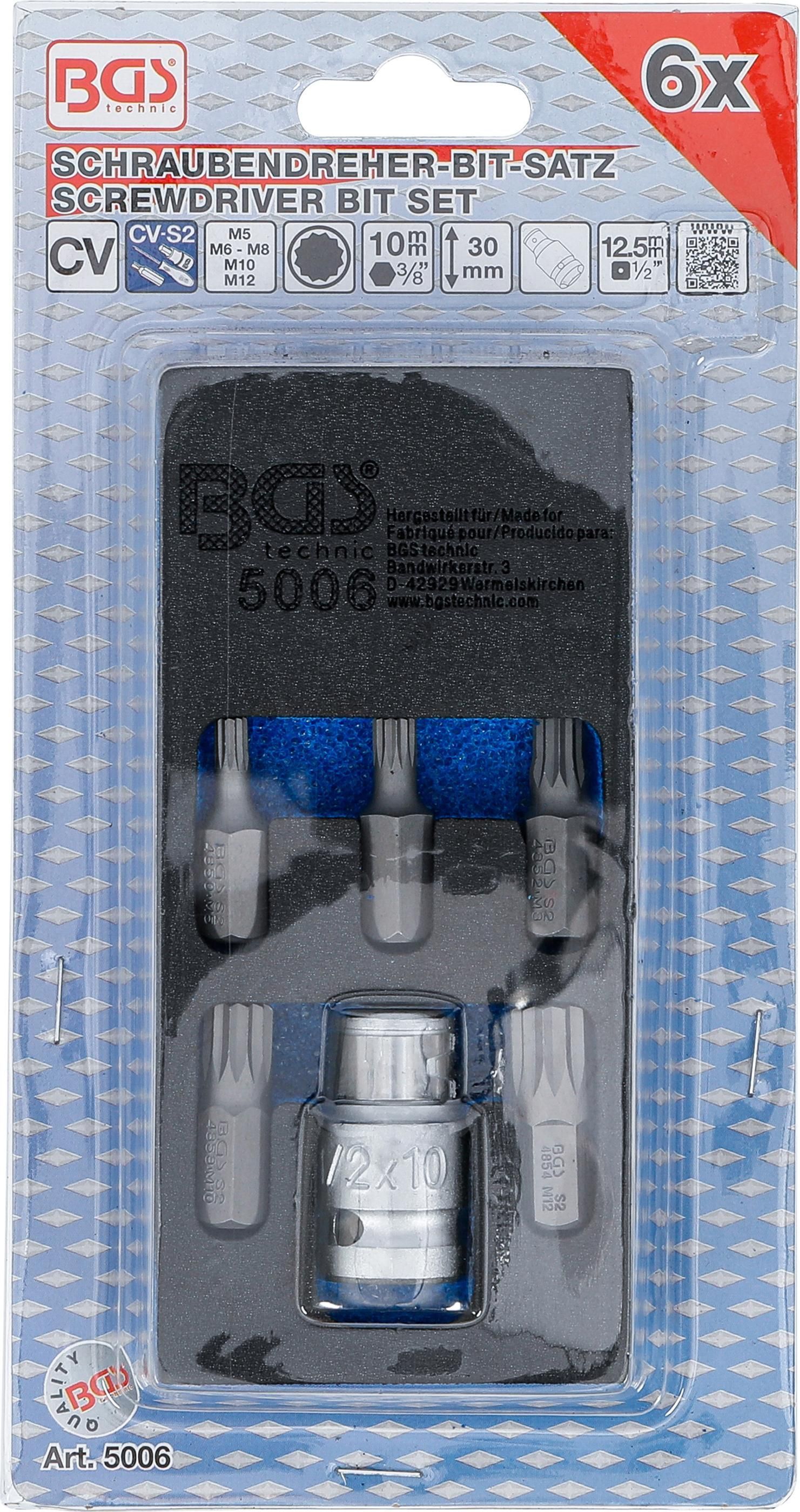 BGS Schraubendreher-Bit-Satz | Antrieb Außensechskant 10 mm (3/8") | Innenvielzahn (für