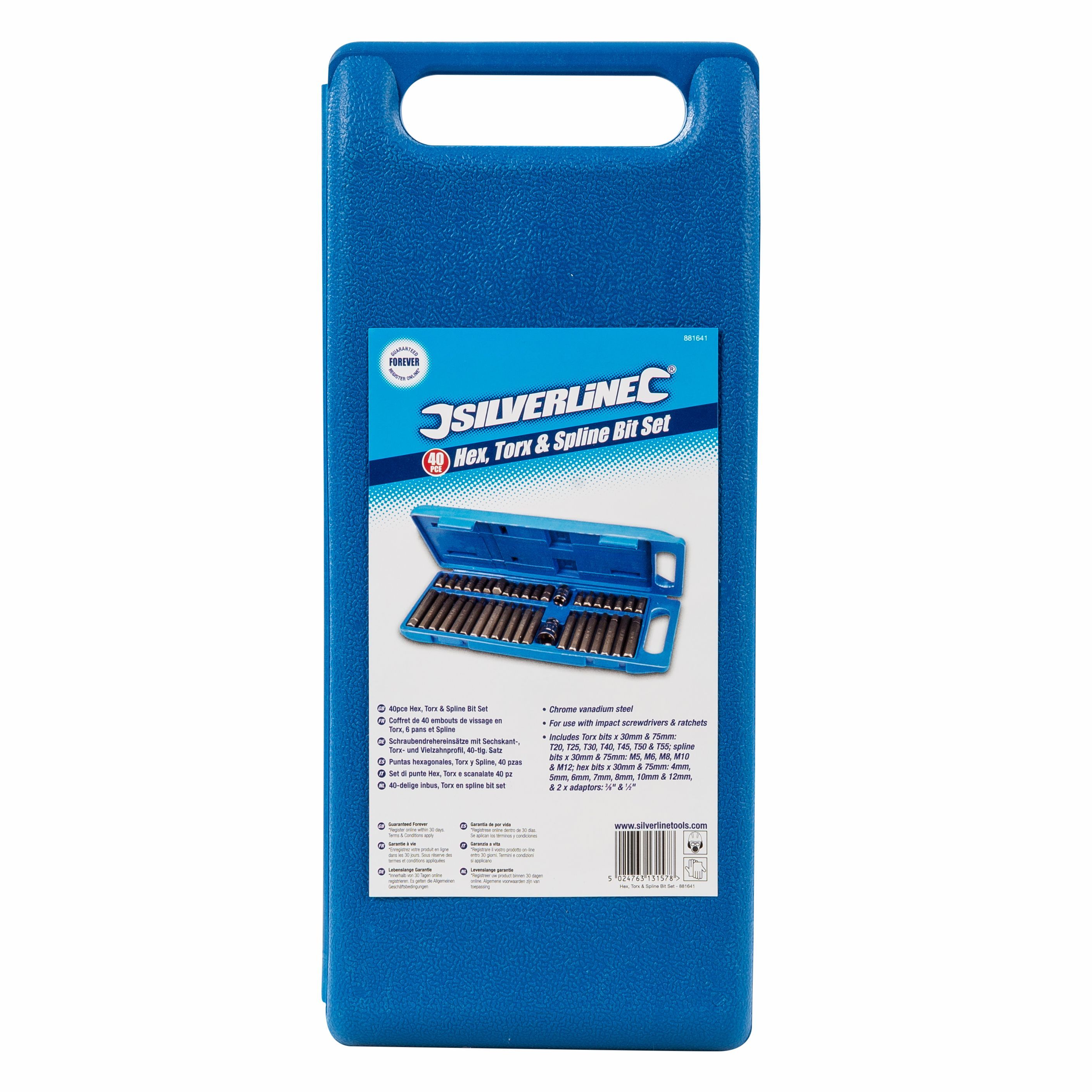 Schraubendrehereinsätze mit Sechskant-, T20–T55- u. Vielzahnprofil, 40-tlg. Satz