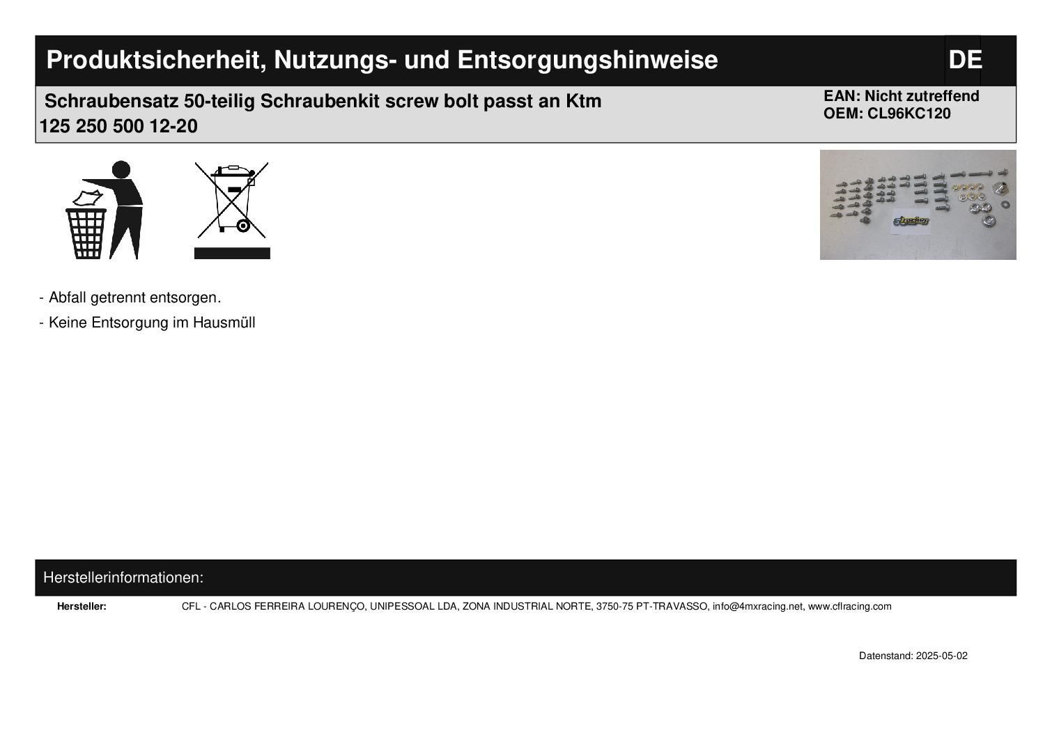 Schraubensatz 50-teilig Schraubenkit screw bolt passt an Ktm 125 250 500 12-20