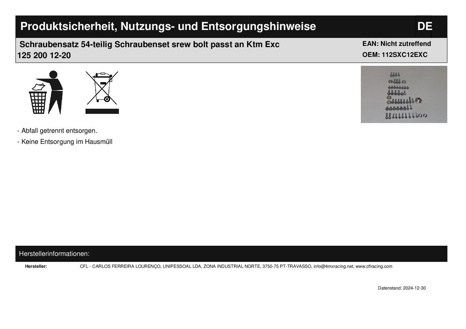Schraubensatz 54-teilig Schraubenset srew bolt passt an Ktm Exc 125 200 12-20