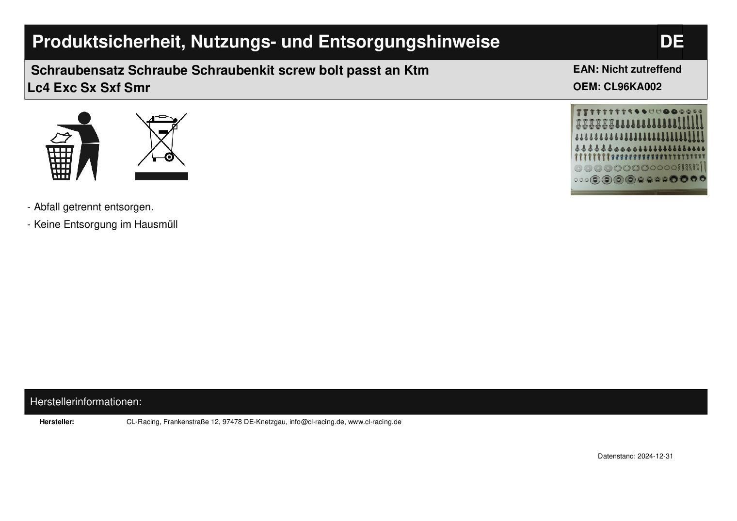 Schraubensatz Schraube Schraubenkit screw bolt passt an Ktm Lc4 Exc Sx Sxf Smr In dieser Auktion gibt es folgenden Artikel zu kaufen: 160-teiliger Schraubensatz in Top-Qualität (siehe Foto) Fahrzeug: passend für Ktm Bj.: --- passend für Husaberg Bj.: --- passend für Husqvarna Bj.: --- Lieferumfang: