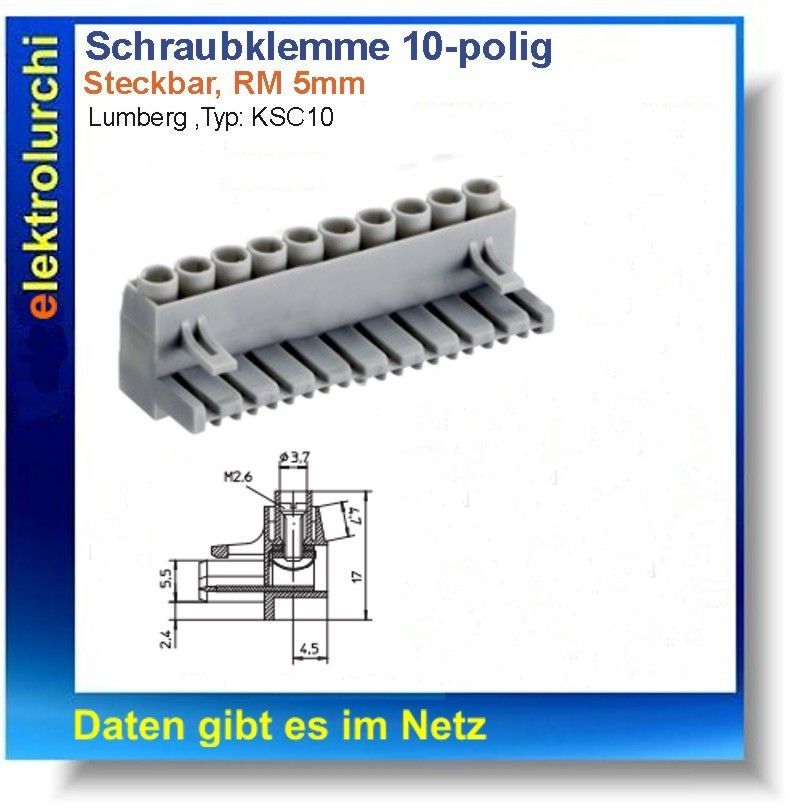 Schraubklemme 10-polig, steckbar, Lumberg KSC 10, gerade, RM5,00, 1St.