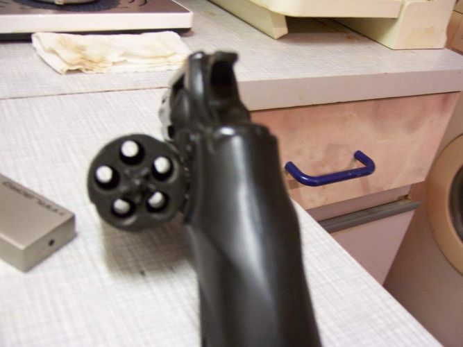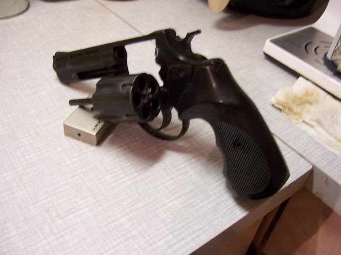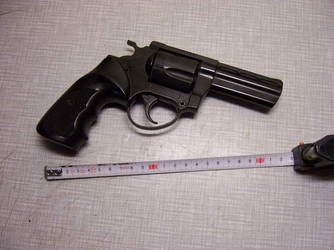biete einen voll funktionstüchtigen Trommelrevolver 38 - Magnum ° geeignet zum verschiessen von Platzpatronen ° hergestellt in Deutschland ° Waffen-Nr. : 034635 ° Trommel faßt 5 Patronen - 9 mm ° dabei ein Aufsatz für Leuchtkugeln o. Raketen ° der Revolver wurde nur Silvester
