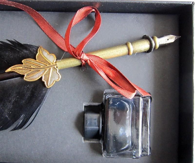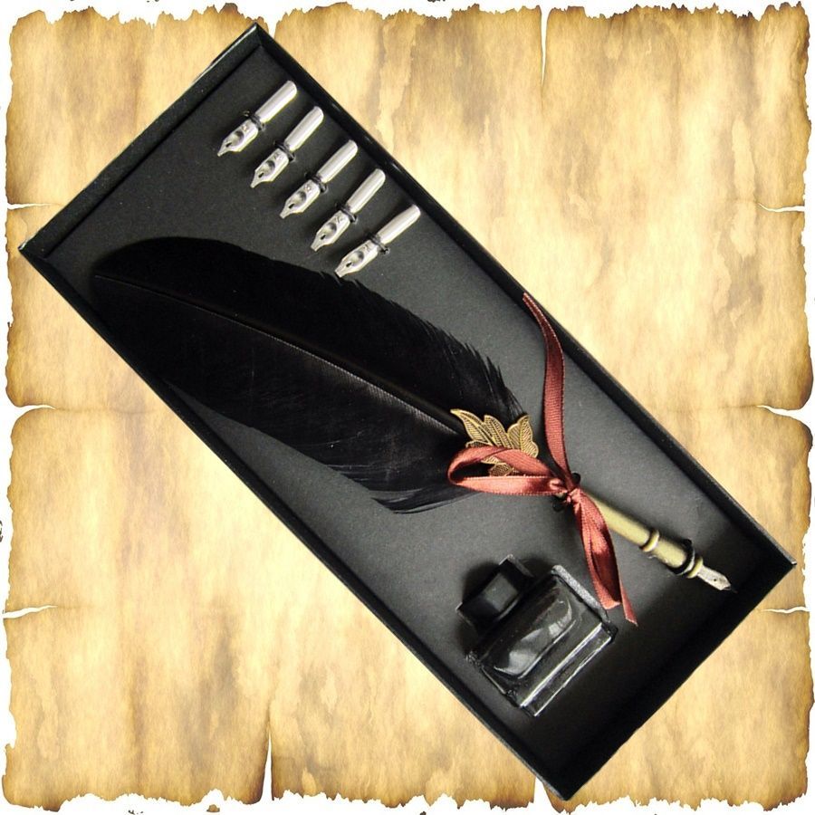 Schreibfeder Geschenkset Truthahnfeder schwarz 24 cm Kalligrafieset Schreibset