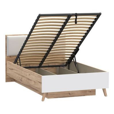 • Bett mit lift Latterost Vankka VNKL4122-C338 Helle Eiche/Weiß 120x200 cm