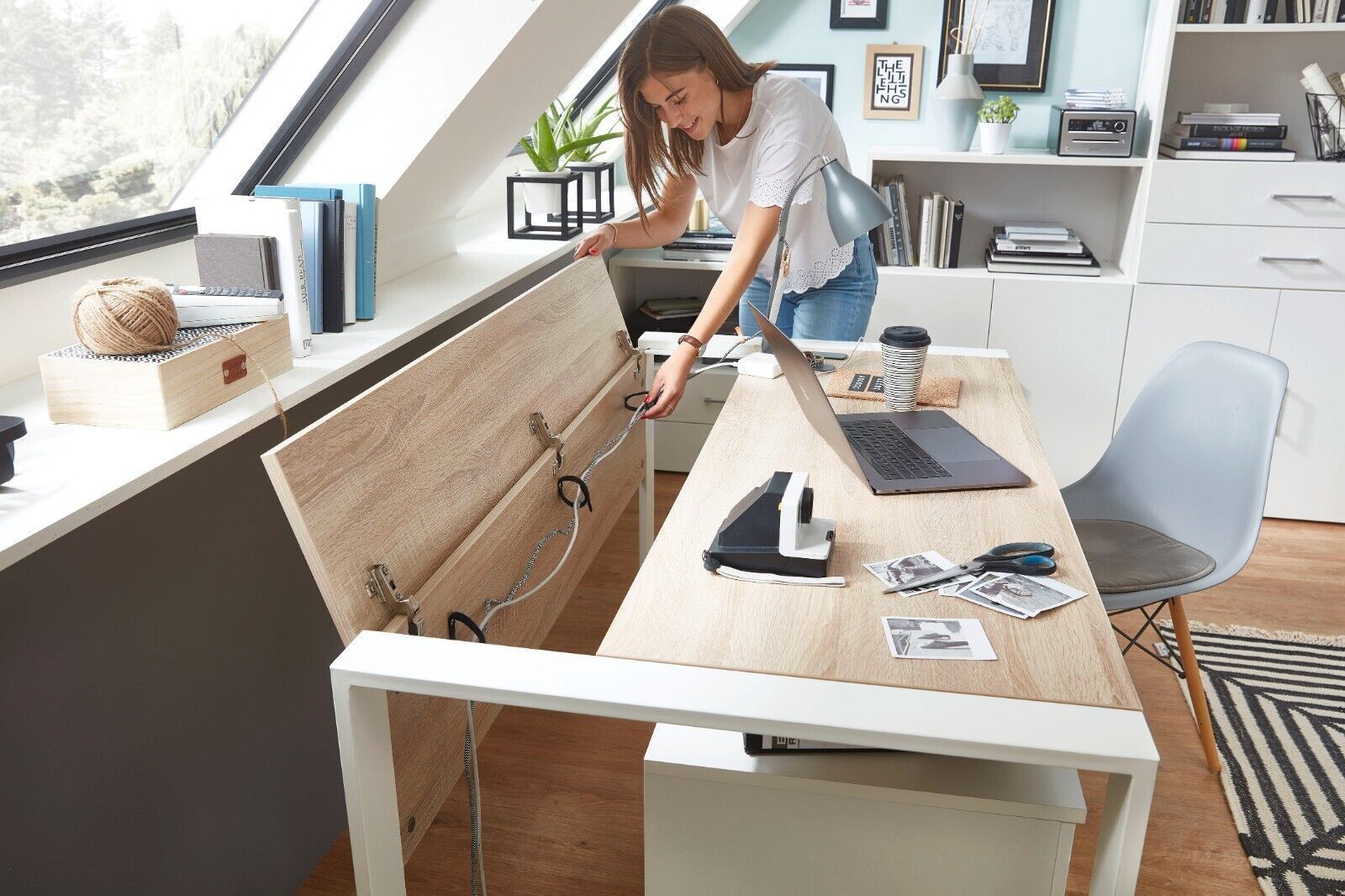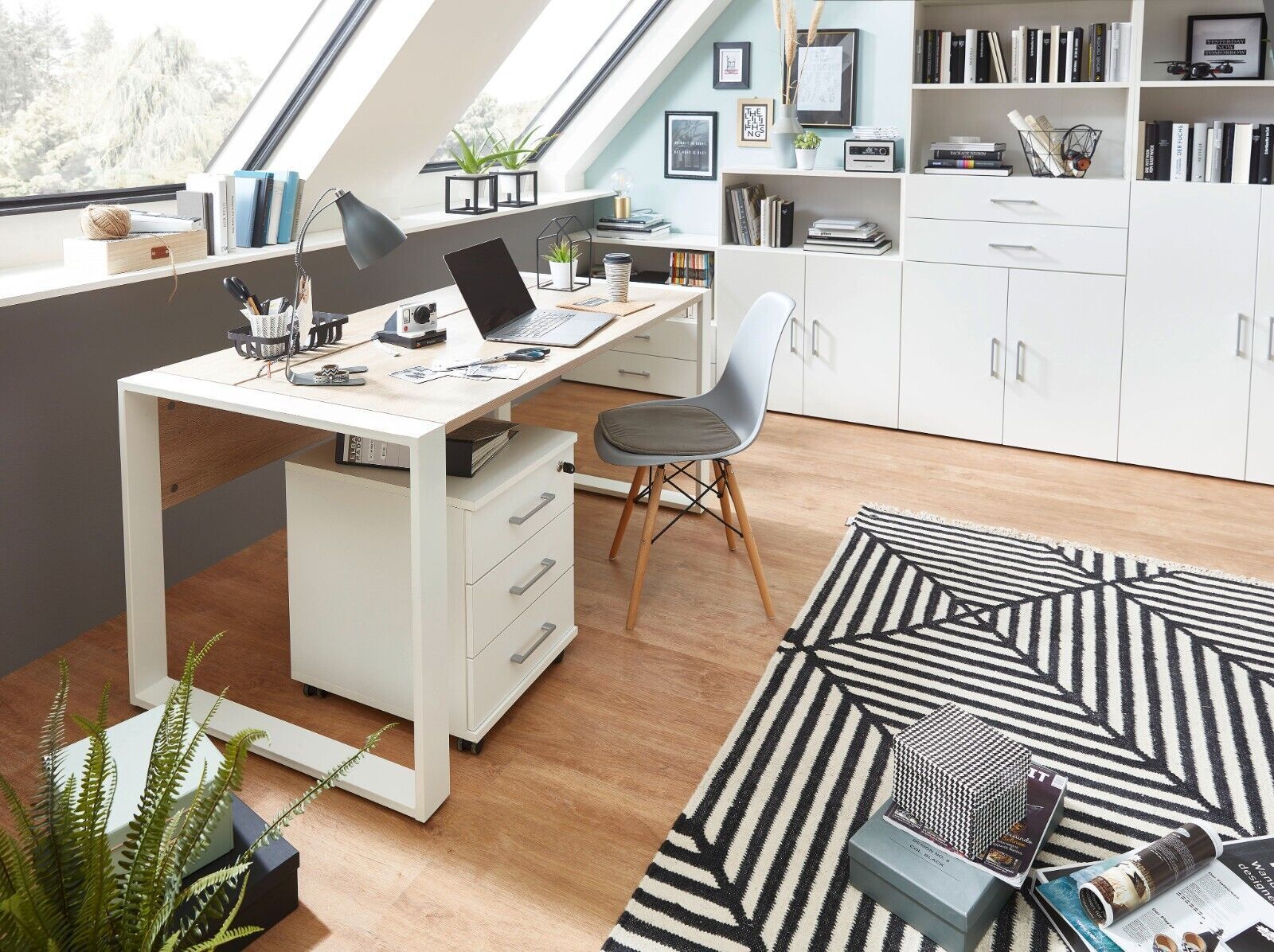 Schreibtisch 120x74x80cm Betonfarben Bürotisch Arbeitstisch Kufengestell Metall