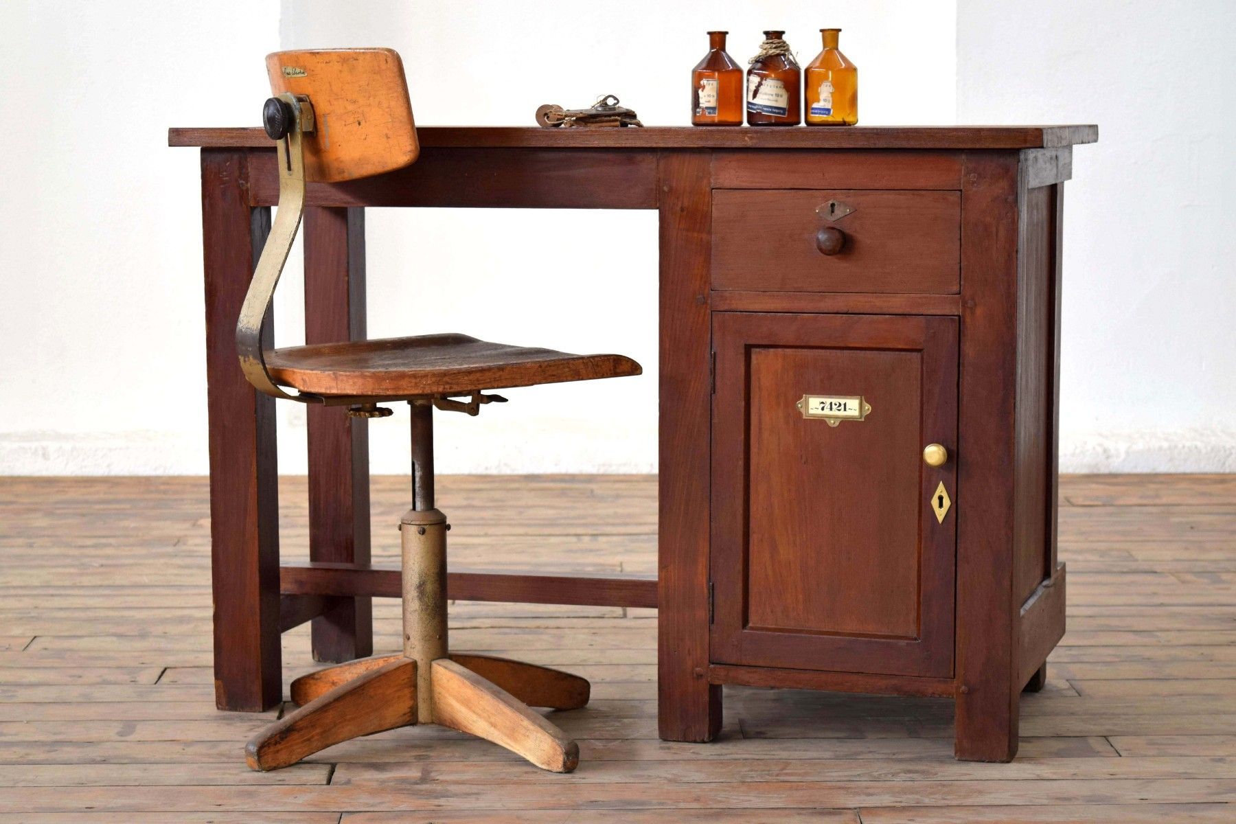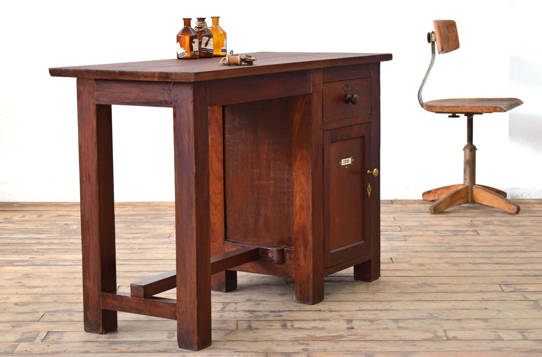 Schreibtisch Antik Teak Holz Uhrmacher Industriedesign Vintage Alt Bürotisch Fabrik