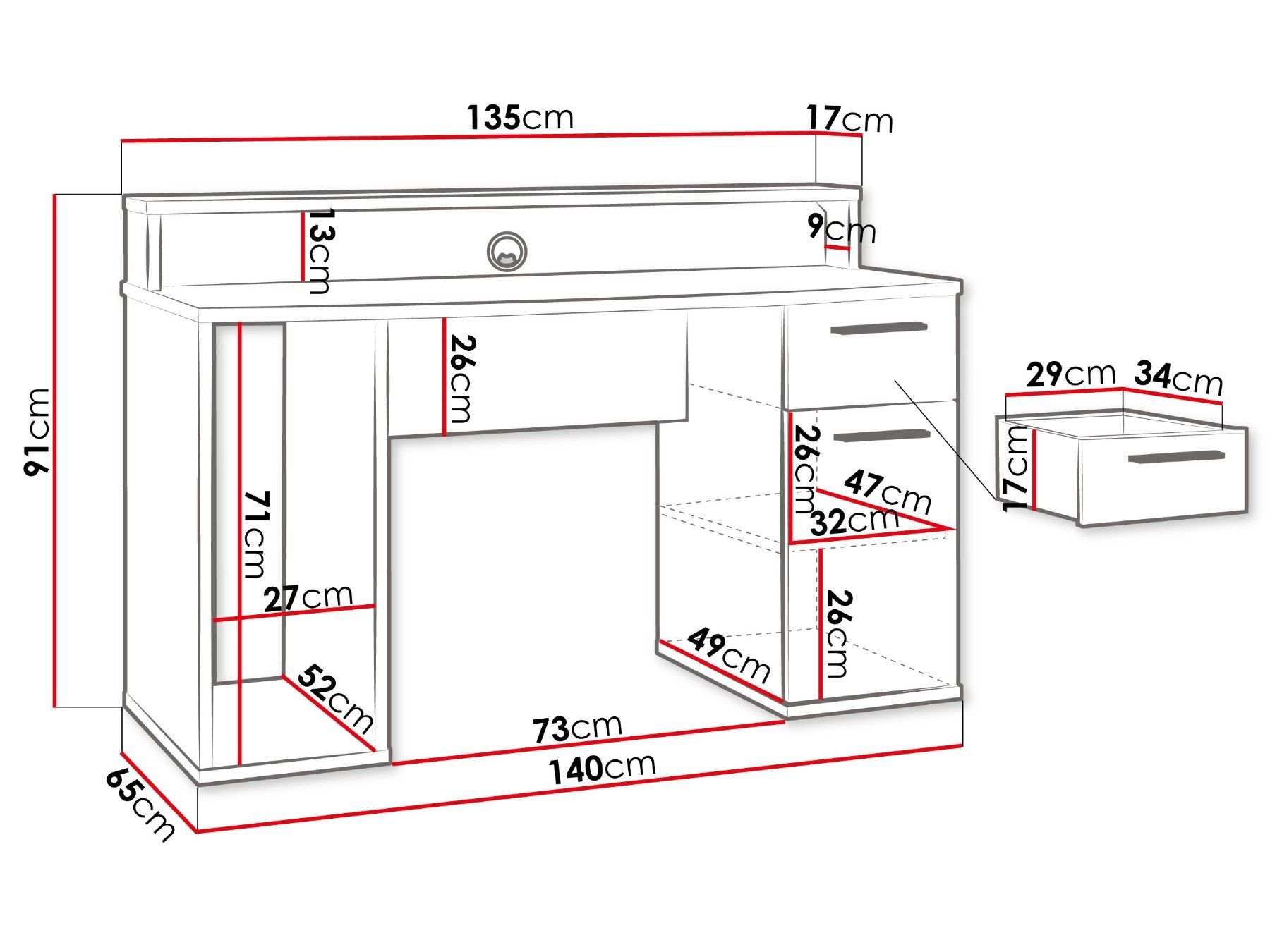 Piksel Schreibtisch Computertisch Rechts Bürotisch B90 x H77 x T50 cm