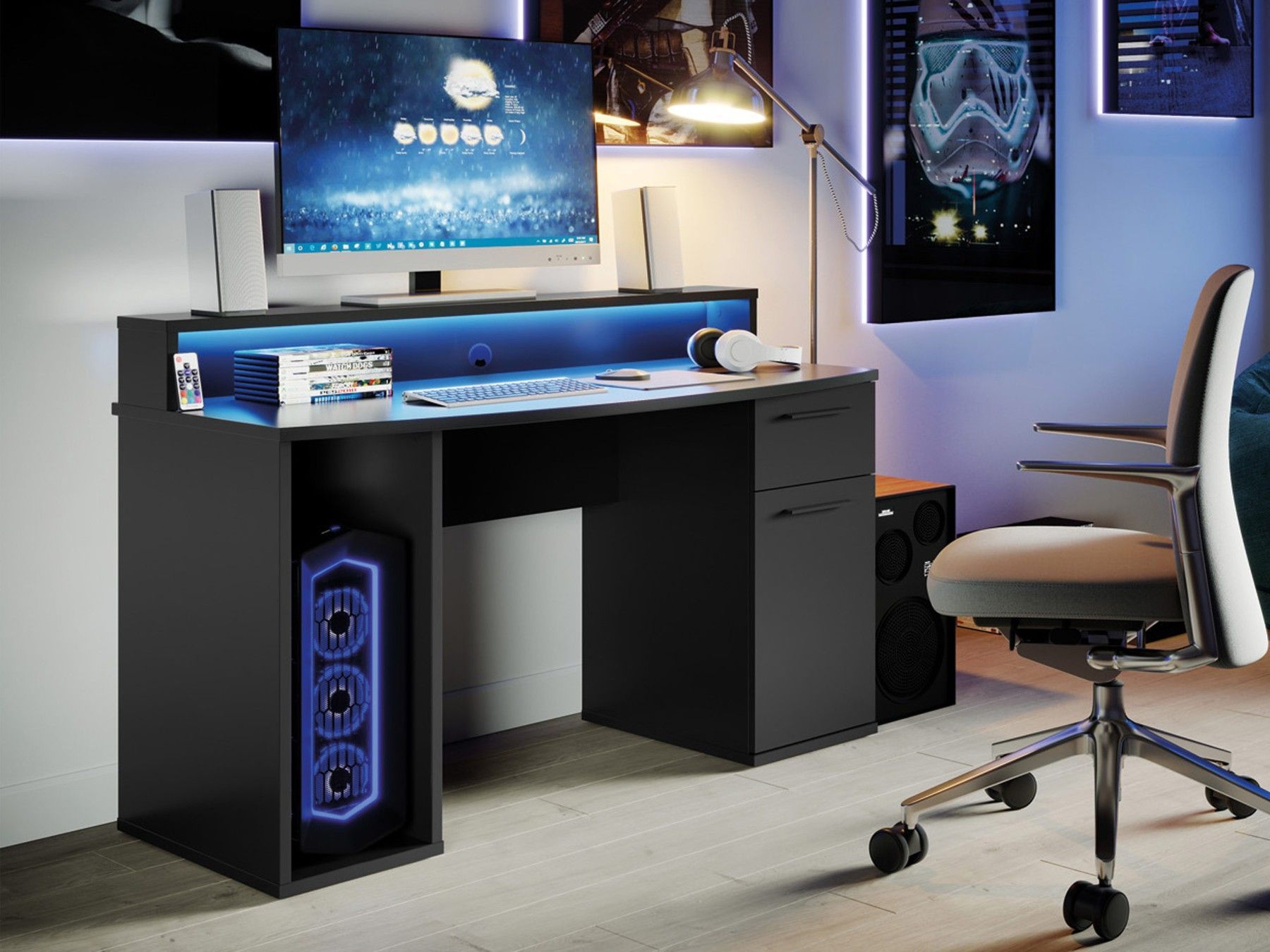 • Gamer Tisch Computertisch schwarz 150 cm Parisot Gaming Schreibtisch mit Beleuchtung