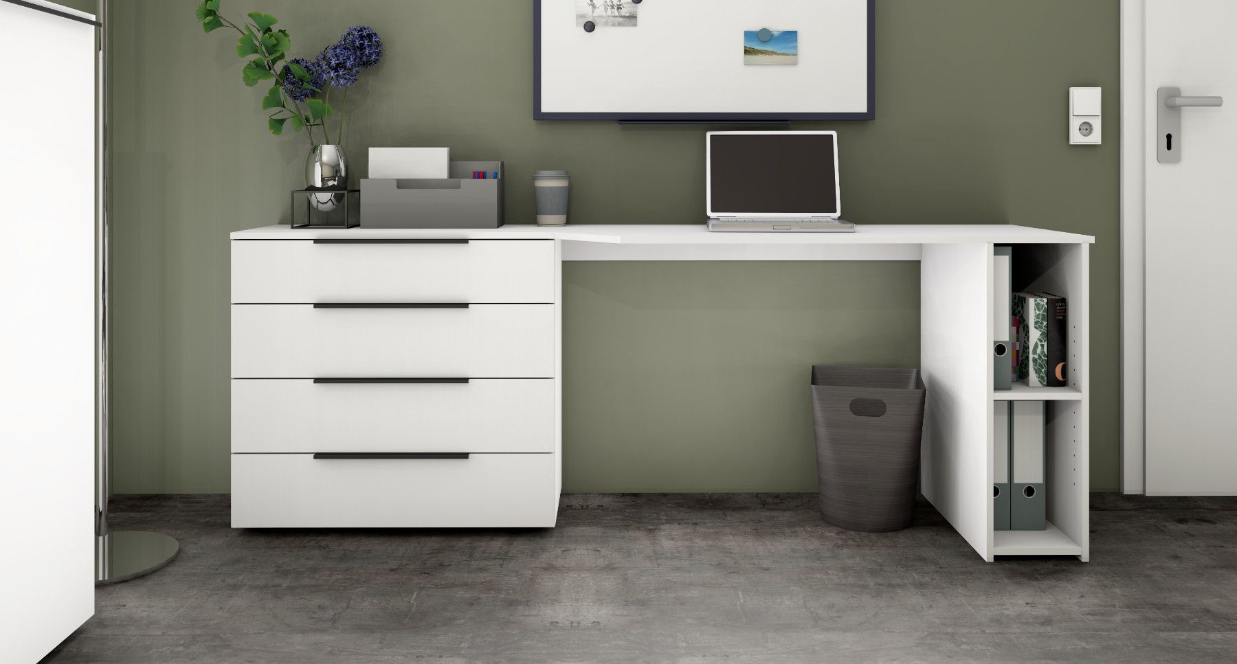 Schreibtisch Computertisch Arbeitstisch Büro Kommode Schubkästen Weiß Tom