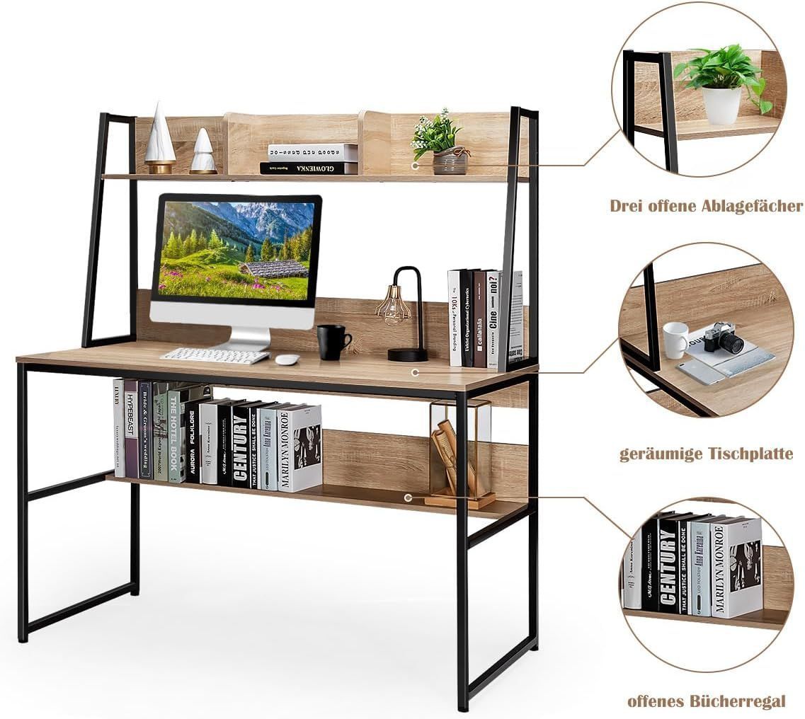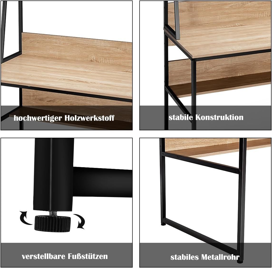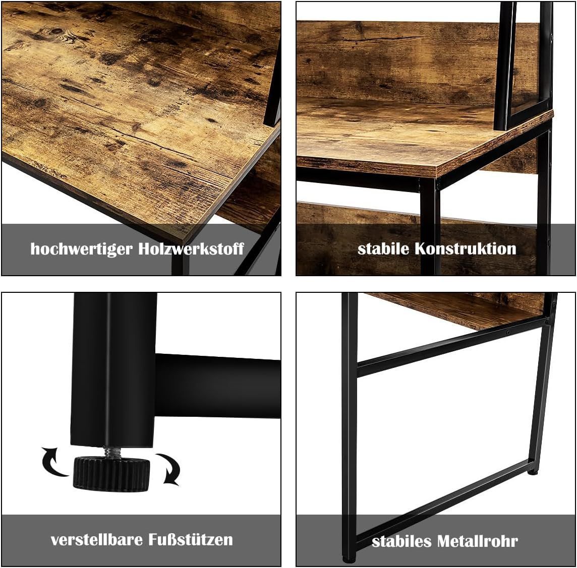 Schreibtisch, Computertisch aus Holz mit Metallrahmen & verstellbaren Fußpads