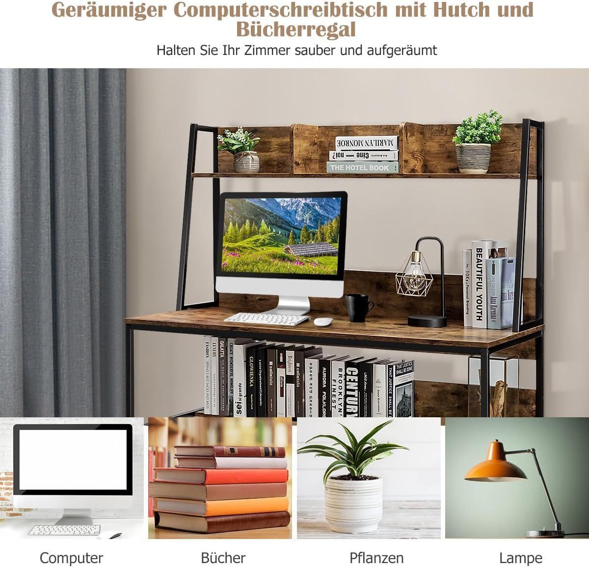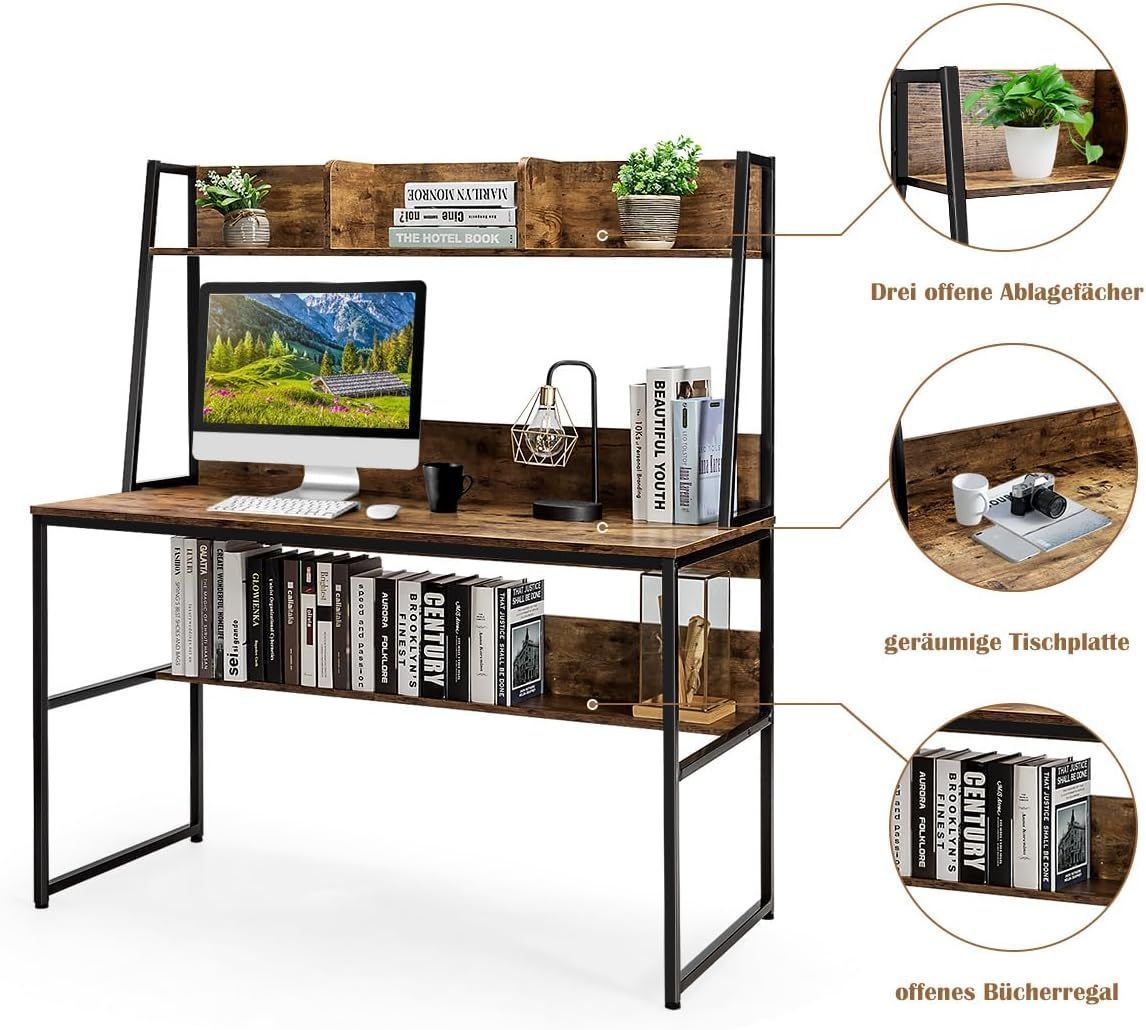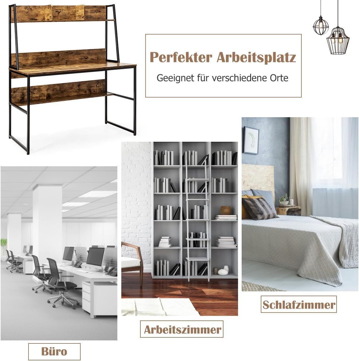 Schreibtisch, Computertisch aus Holz mit Metallrahmen & verstellbaren Fußpads