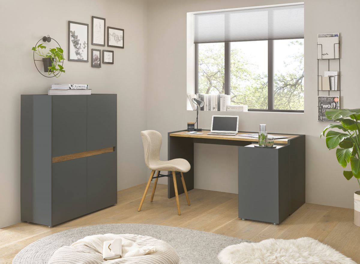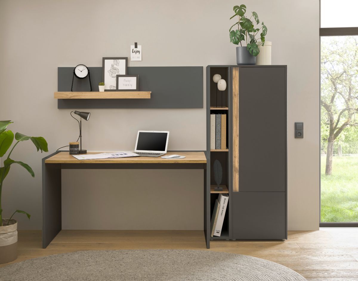 Schreibtisch Computertisch Homeoffice Büro Arbeitstisch grau und Eiche Center 143 cm