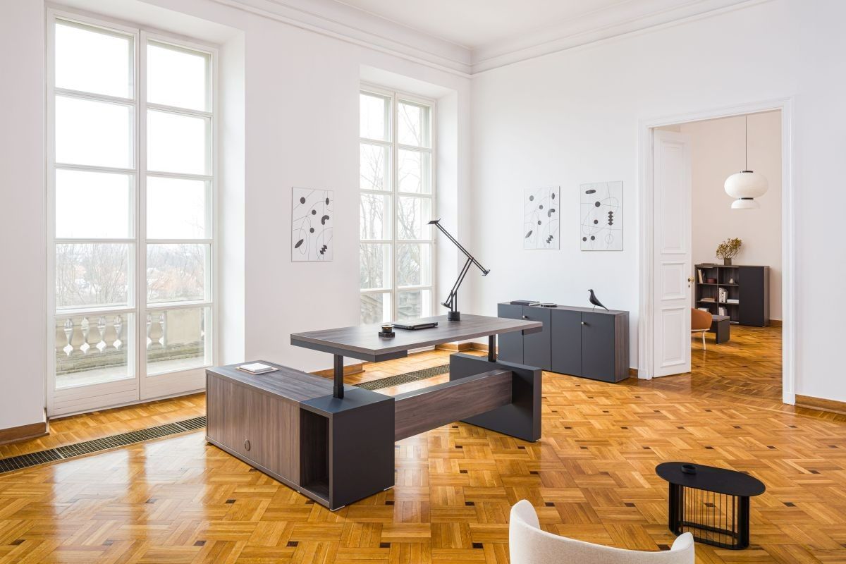 Chefzimmer, Chefschreibtisch - Wir sind Ihr Partner für hochwertige Büroeinrichtung Schreibtisch FARO – elektrisch höhenverstellbar, mit integriertem Sideboard Ein perfekt eingerichtetes Chefzimmer sollte nicht nur authentisch sein, sondern auch durch Moderne und Funktionalität überzeugen! Der