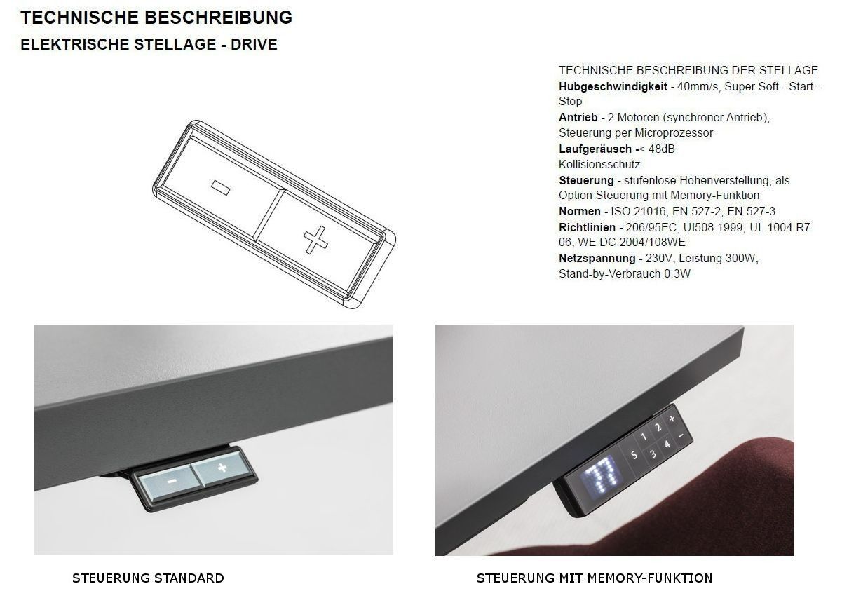 WIR SIND IHR PARTNER FÜR HOCHWERTIGE BÜROEINRICHTUNG Elektrisch höhenverstellbarer Schreibtisch OGI DRIVE Komfort und Ergonomie ist das wichtigste Merkmal eines Arbeitsplatzes. Dank der technischen Bauweise passt sich der elektrisch höhenverstellbare Schreibtisch OGI_DRIVE den Bedürfnissen seines Be