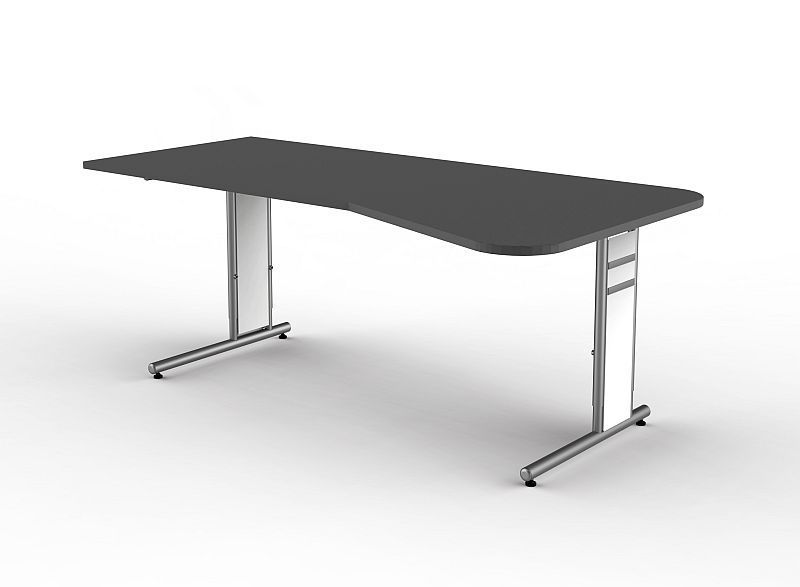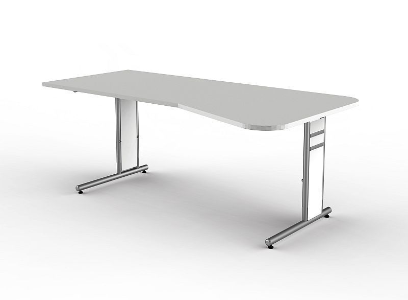 Schreibtisch Freiformtisch Form 4 195x80/100 cm C-Fuß Alusilber Applikationen Typ C