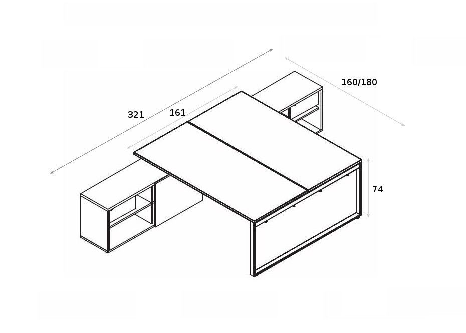 Schreibtisch für 2 Personen OGI Q 160/180 x 321 x 74 cm mit Managerschrank