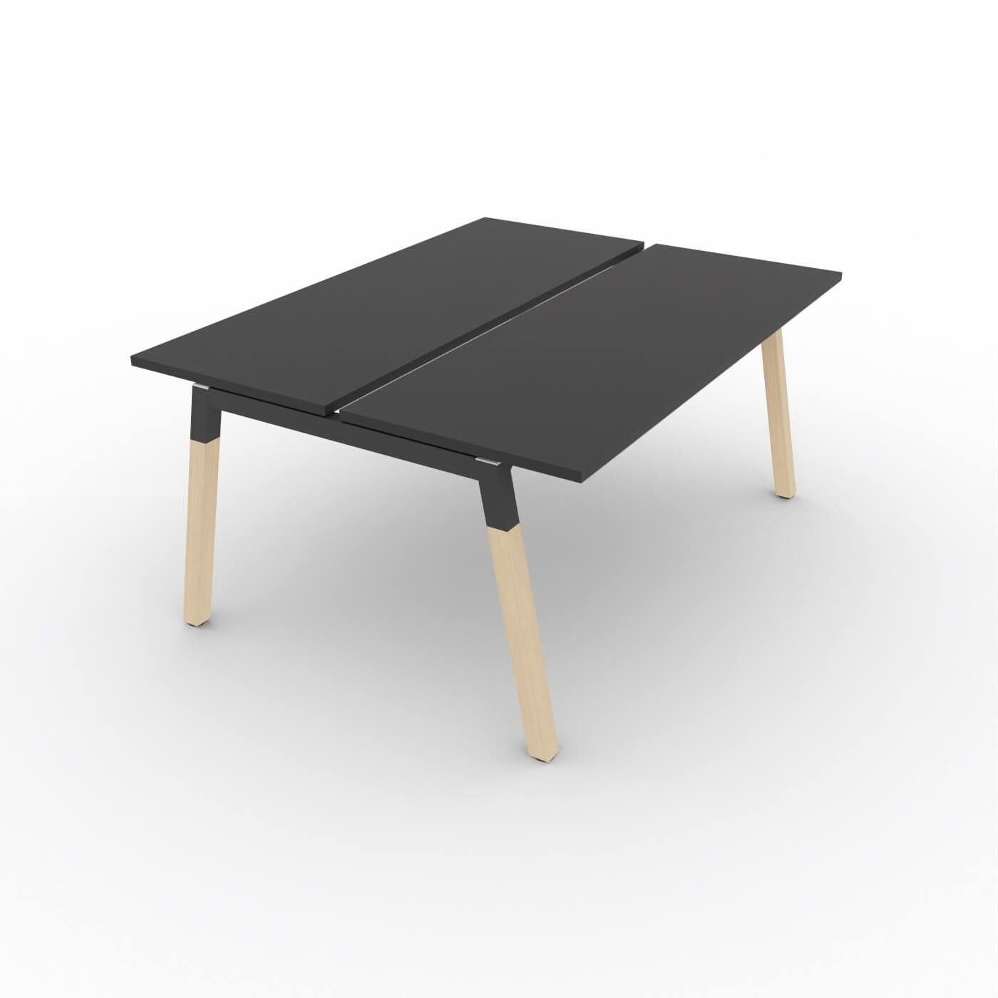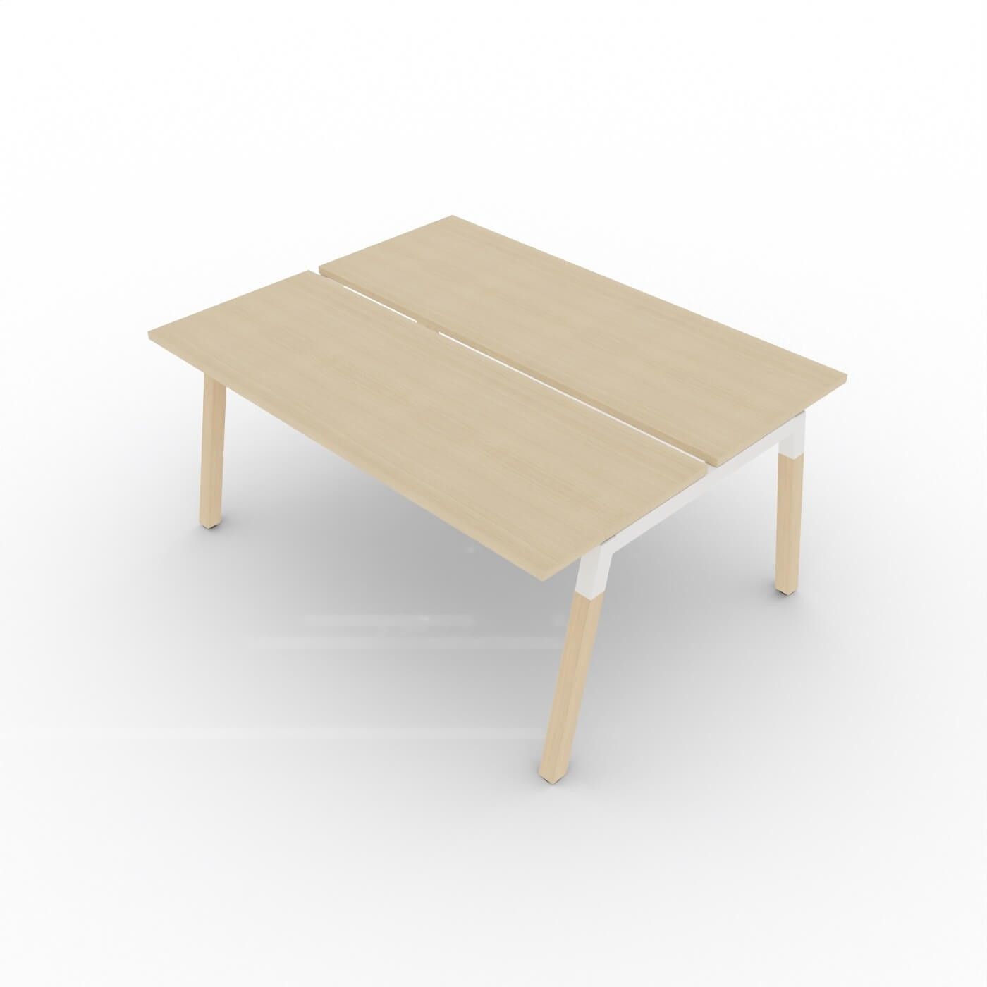 Schreibtisch für 2 Personen POLARE m. Massivholzbeinen in Eiche140-200x124/164x74 cm