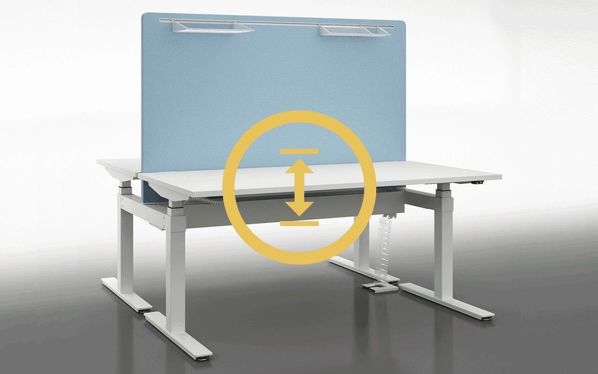 Doppelarbeitsplatz Teamarbeitsplatz - Wir sind Ihr Partner für hochwertige Büroeinrichtung Doppelschreibtisch WINGLET elektrisch höhenverstellbar (65 – 130 cm), Steh-Sitz-Tisch Der Doppelschreibtisch WINGLET elektrisch höhenverstellbar ist einer der fortschrittlichsten Büromöbel-Systeme für ho