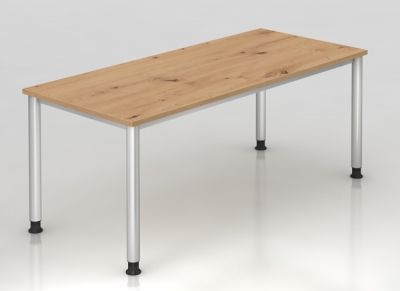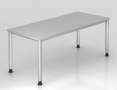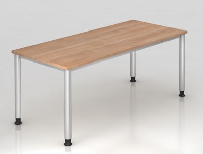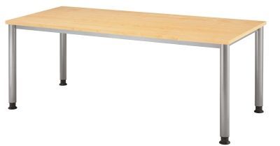 Schreibtisch Hamburg mit 4-Fuß-Gestell - lieferbare Dekorfarben: Ahorn Buche Lichtgrau Nussbaum Weiß oder Asteiche, Maße: 180 x 80 x 68,5-81 cm (B x T x H)