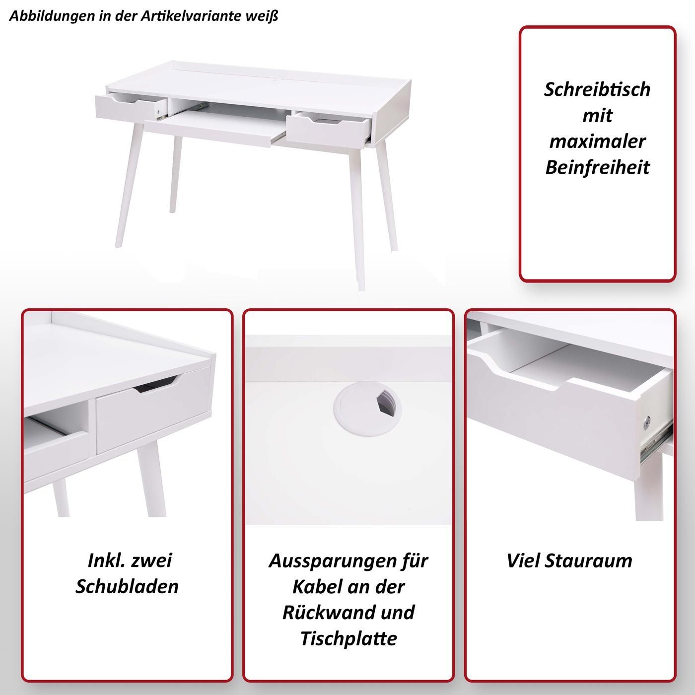 Mendler Schreibtisch HWC-A70b, Bürotisch Computertisch, MDF 120x55cm