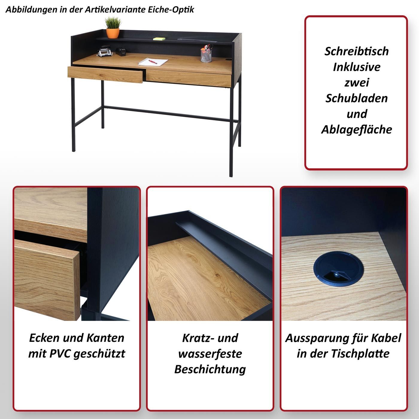 Mendler Schreibtisch HWC-J79, Bürotisch Computertisch Arbeitstisch, Schublade 120x50cm