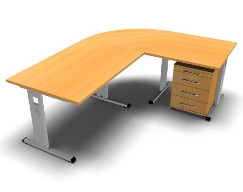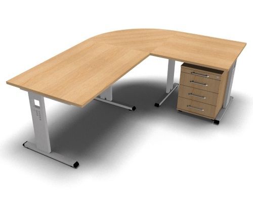 Schreibtischkombination O12 Stellfläche: 200 x 160 cm, Höhe 65 bis 85 cm - Schreibtische mit Rollcontainer