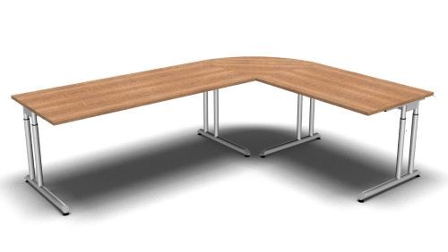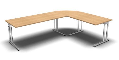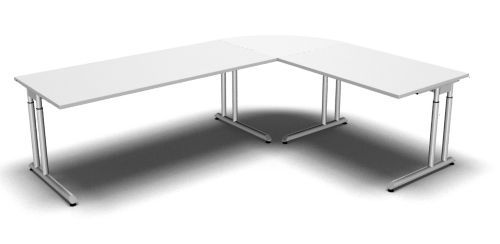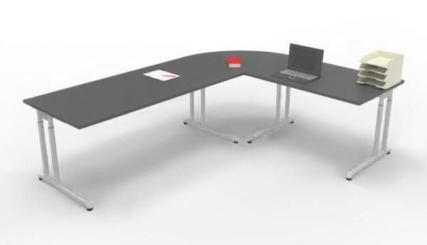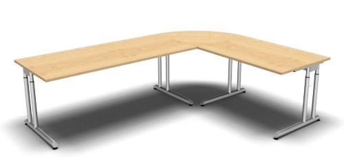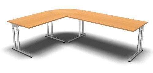 Schreibtisch-Kombination Z6 Stellfläche: 260 x 200 cm Dekor: Ahorn Buche Lichtgrau Nussbaum Eiche oder Weiß Lieferumfang: 1 x Schreibtisch 180 cm 180 x 80 x 68-82 cm (B x T x H) 1 x Schreibtisch 120 cm 120 x 80 x 68-82 cm (B x T x H) 1 x Viertelkreisplatte 90° 80 x 80 x 2,5 cm (B x T x H)