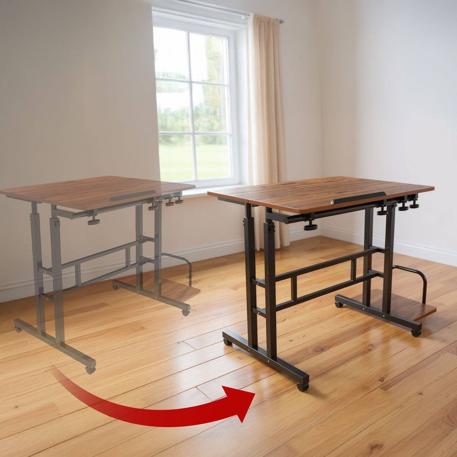 • Höhenverstellbarer Schreibtisch Verstellbarer Bürotisch Gasfeder Ergonomischer