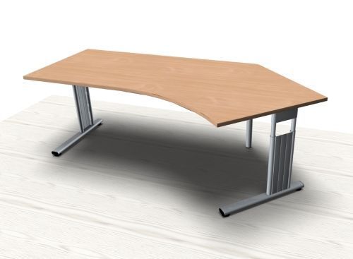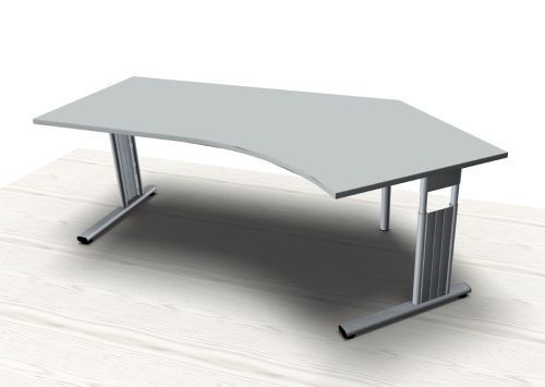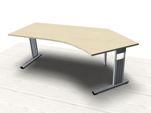 PC-Schreibtisch Mega 135° rechte Seite, Traversengestell in C-Fuß-Ausführung, Maße: 216,6 x 113 x 68 bis 82 cm (B x H x T), Dekorfarbe wählbar.