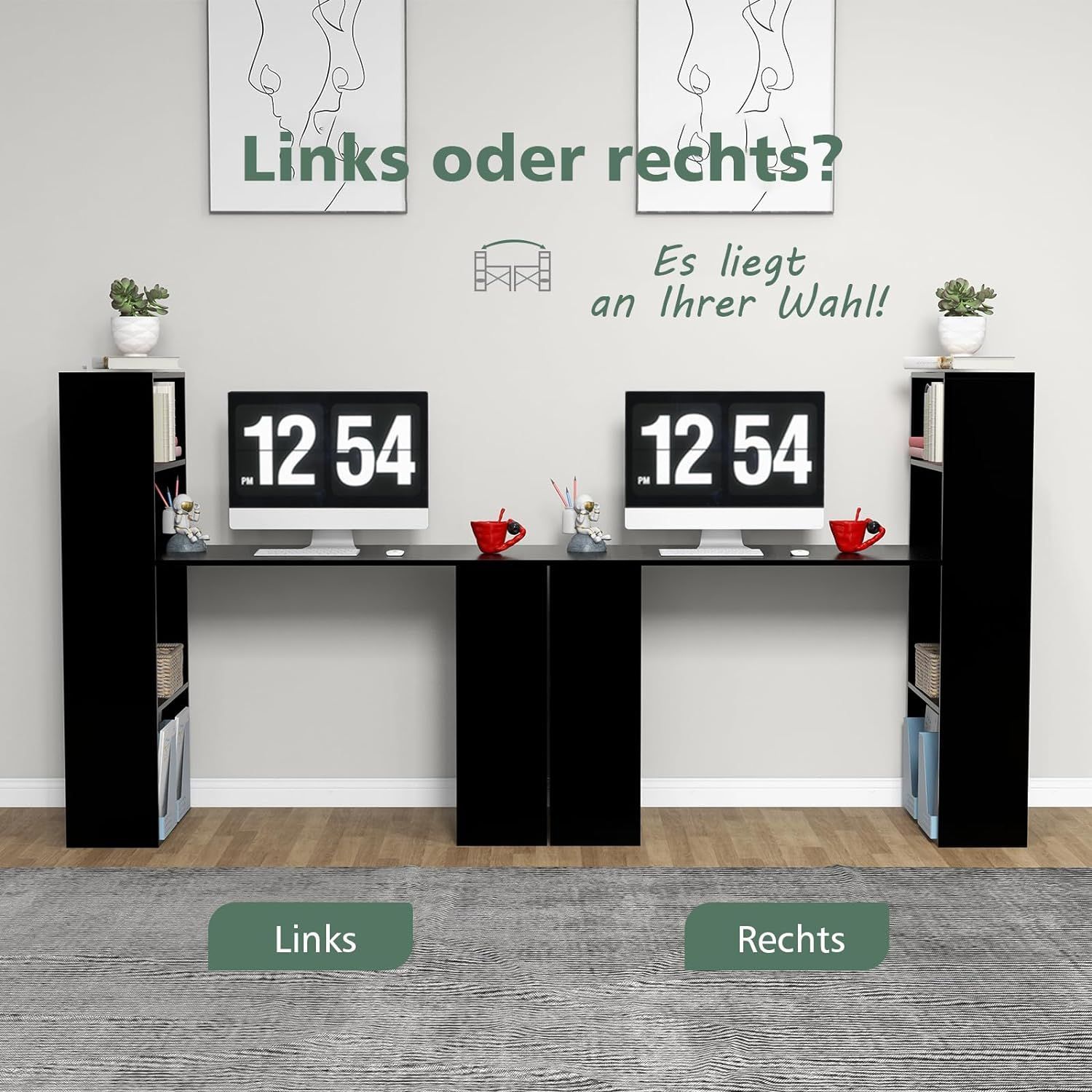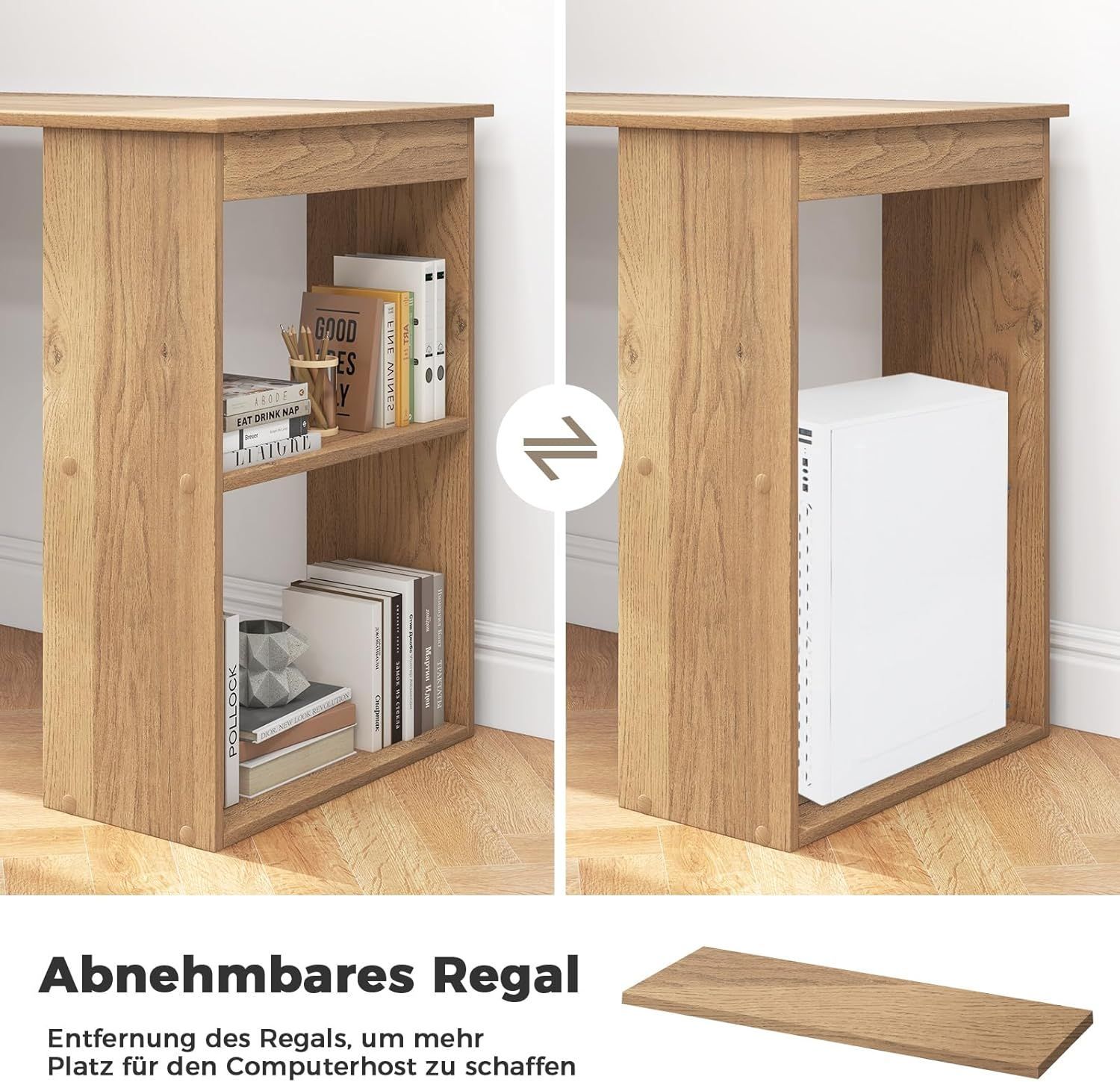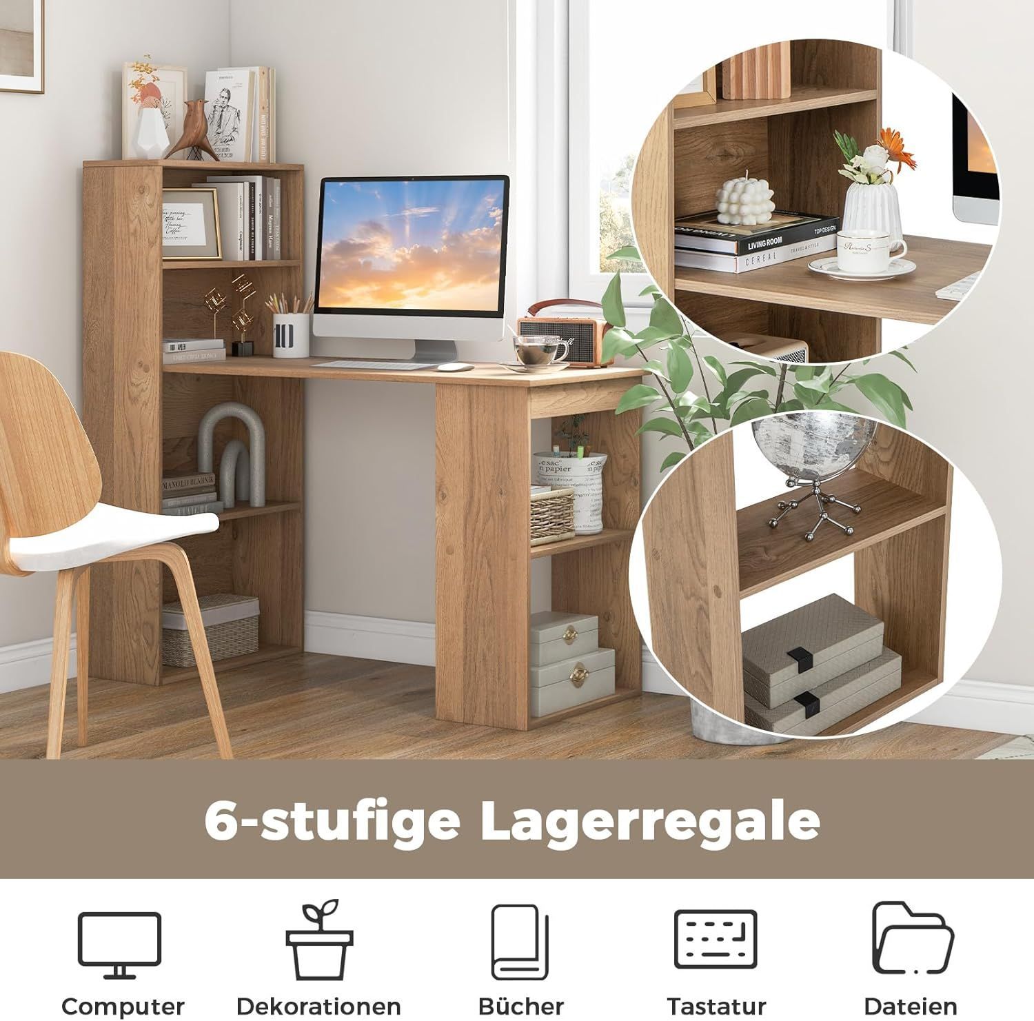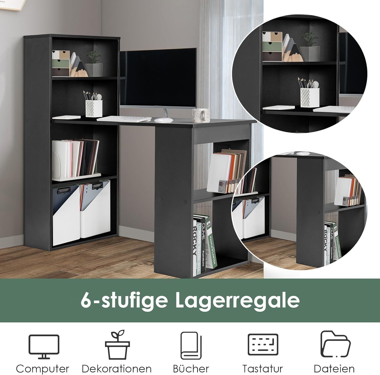 Schreibtisch mit Bücherregal, Computertisch mit 6 Regalen, PC-Tisch mit Regal