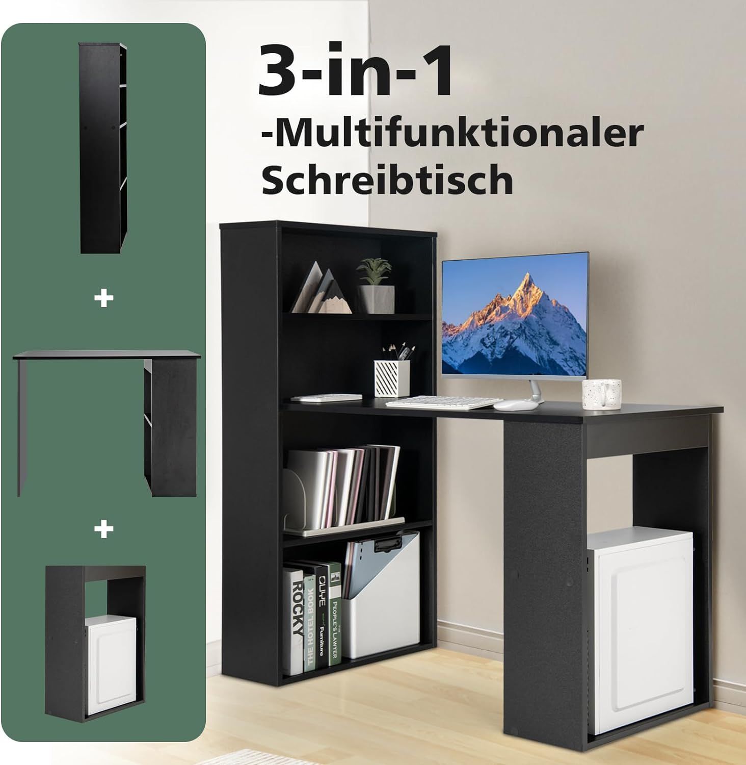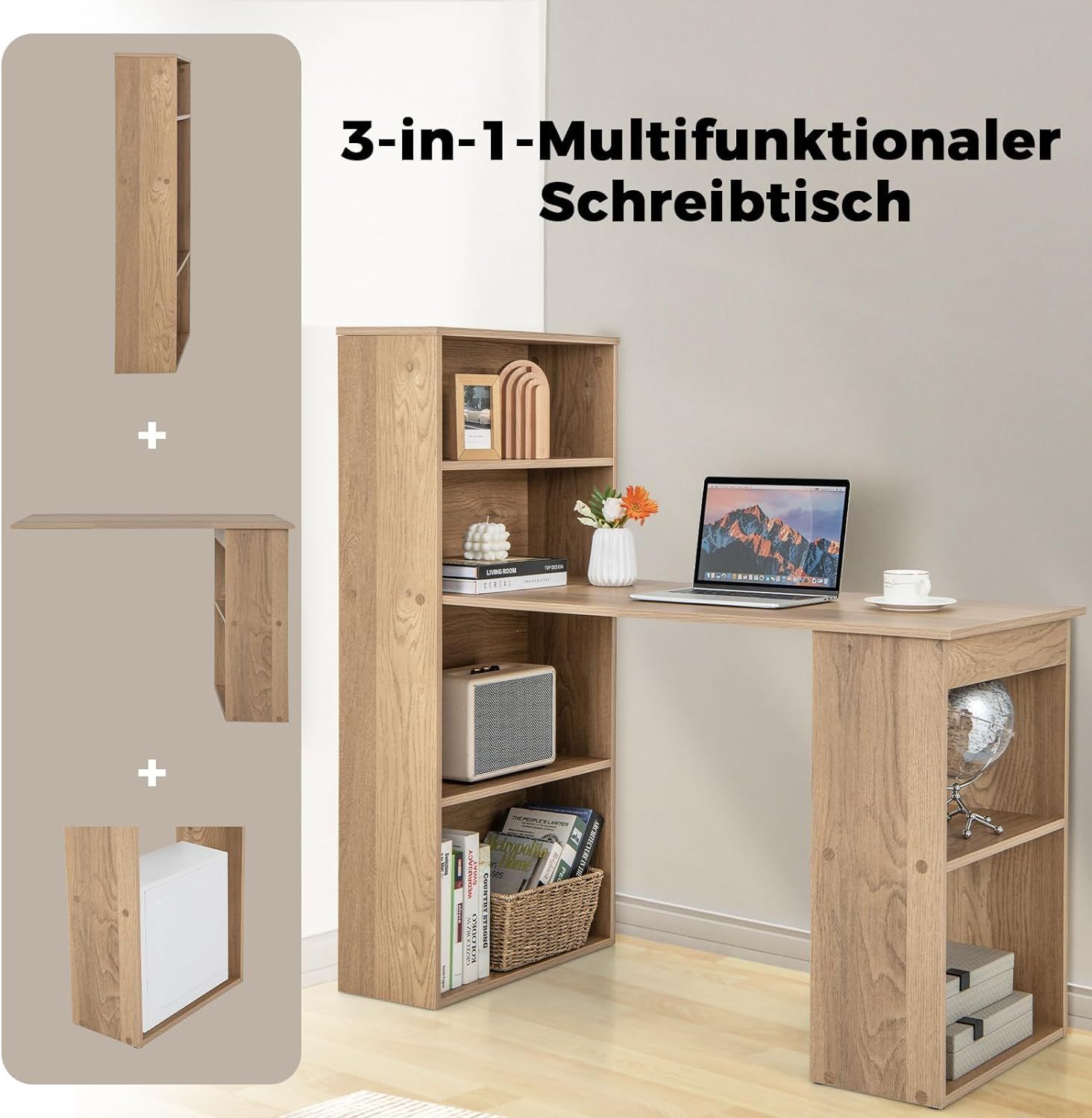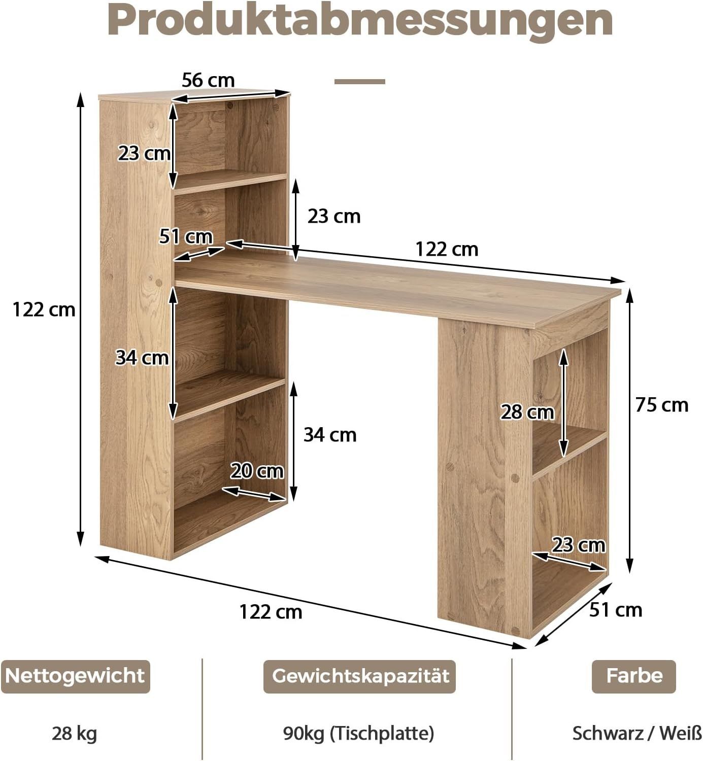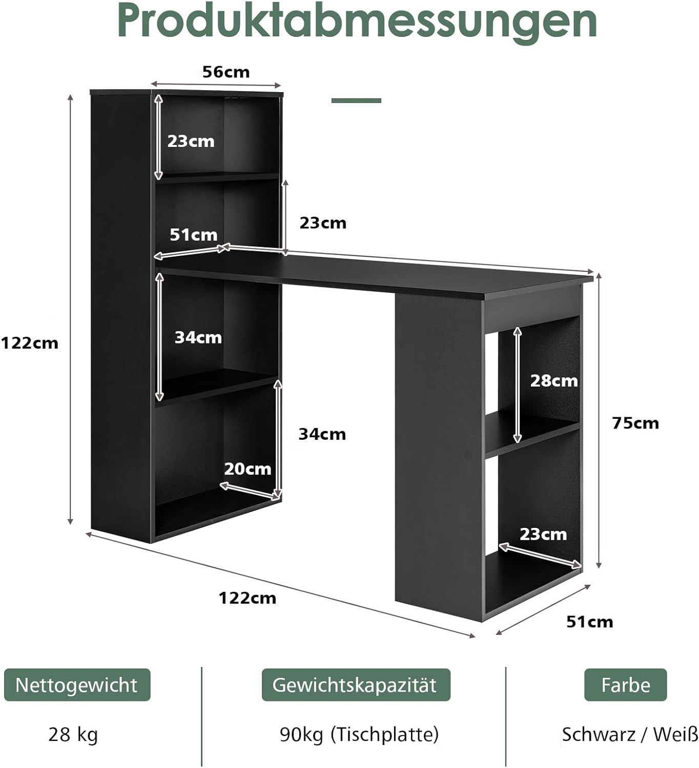 Schreibtisch mit Bücherregal, Computertisch mit 6 Regalen, PC-Tisch mit Regal