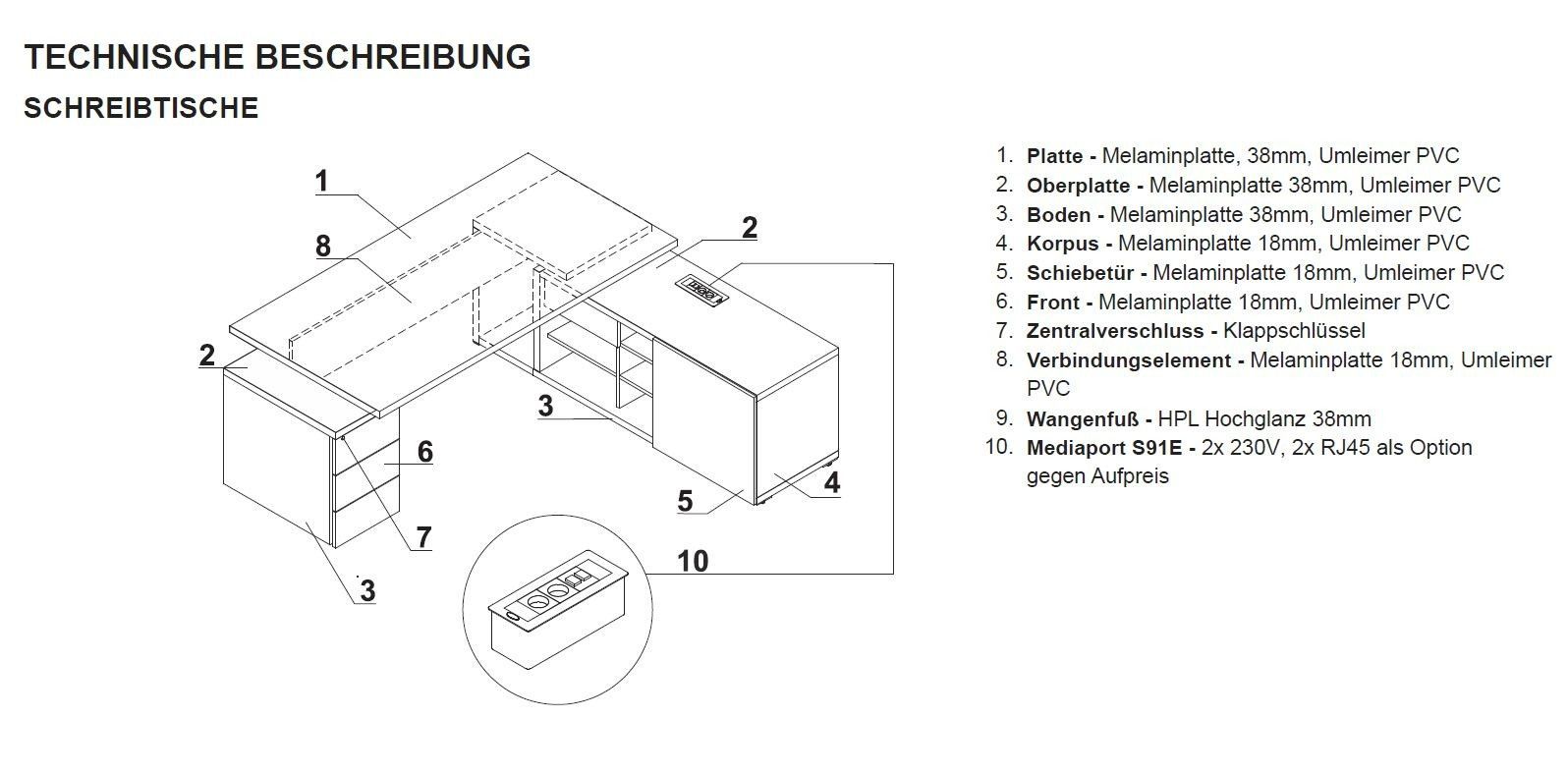 Schreibtisch mit Sideboard und Unterbaucontainer FARO - Chefschreibtisch