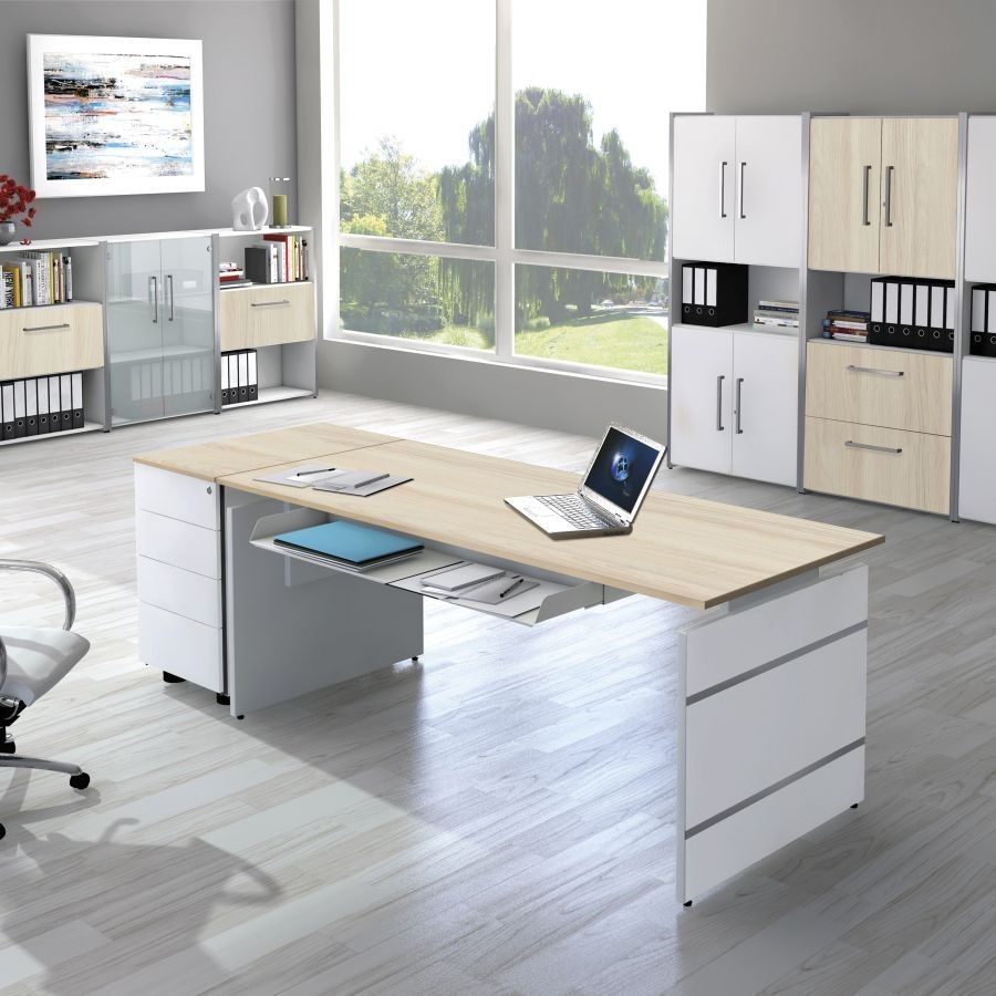 Wir sind Ihr Partner für hochwertige Büroeinrichtung Schreibtisch Neapel mit Wangengestell, Höhe einstellbar auf 68 – 76 cm Das Büromöbelprogramm Neapel bietet Ihnen diesen modernen Schreibtisch mit Wangengestell in 3 Größen, sowie eine großartige Auswahl verschiedenen Dekoren an. Das weiße, m