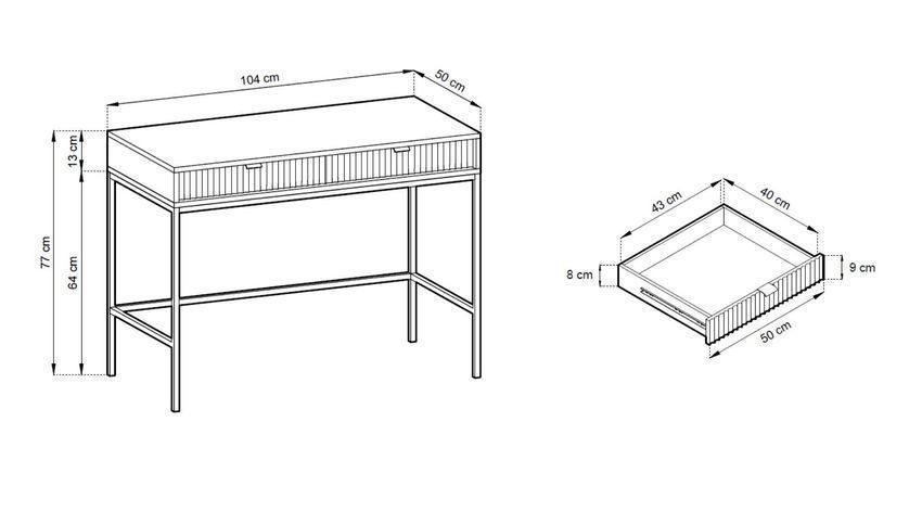 Schreibtisch Nova T104 Schminktisch Schwarz/ Schwarze Beine und Goldene Griffe