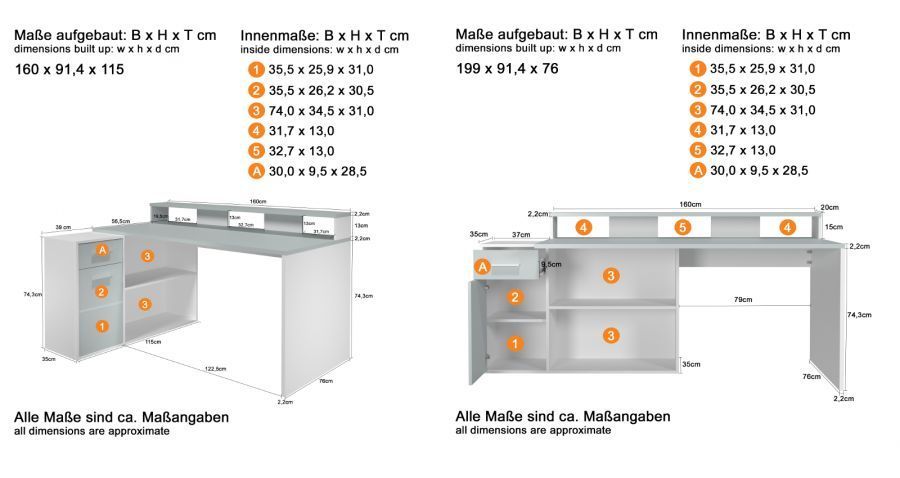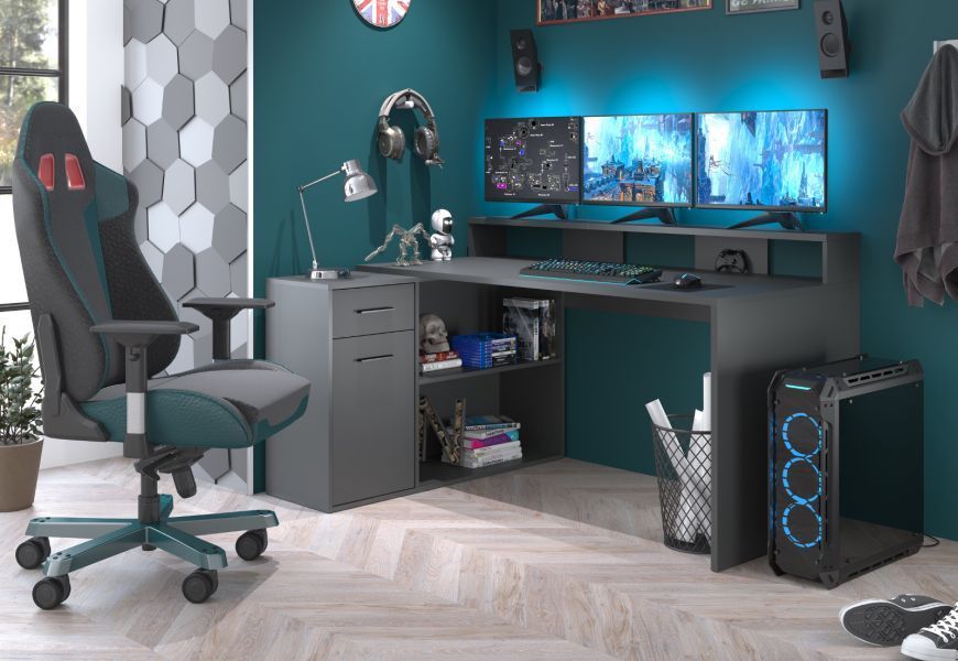 Schreibtisch schwarz Anthrazit Eckschreibtisch mit viel Stauraum Gamer 160 - 200 cm