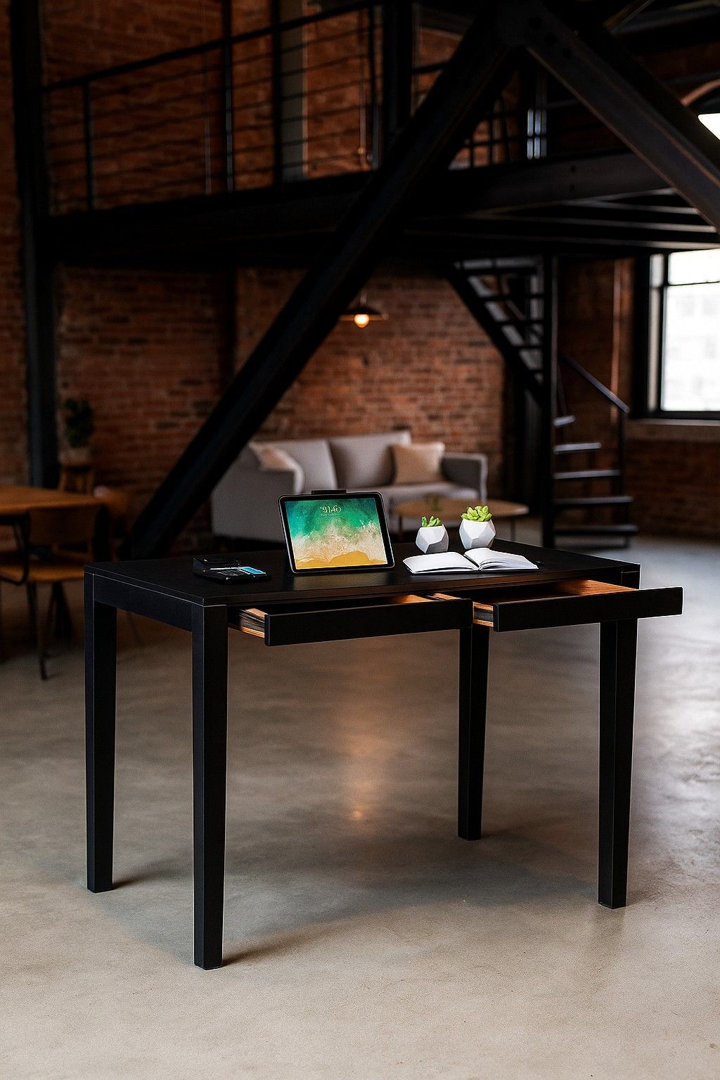 Schreibtisch Sekretär Bürotisch schwarz lackiert Industrial Loft Design