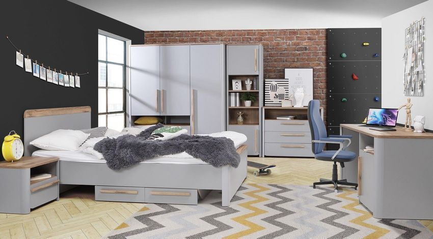Schreibtisch Surfinio mit Schrank 1 Tür Grau/ Canatania Eiche 120 Breit