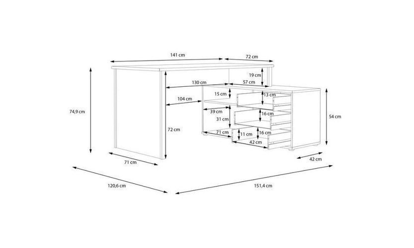 Schreibtisch TEMPRA 2 T2KB231L-C734 Eckschreibtisch mit Kommode weiß