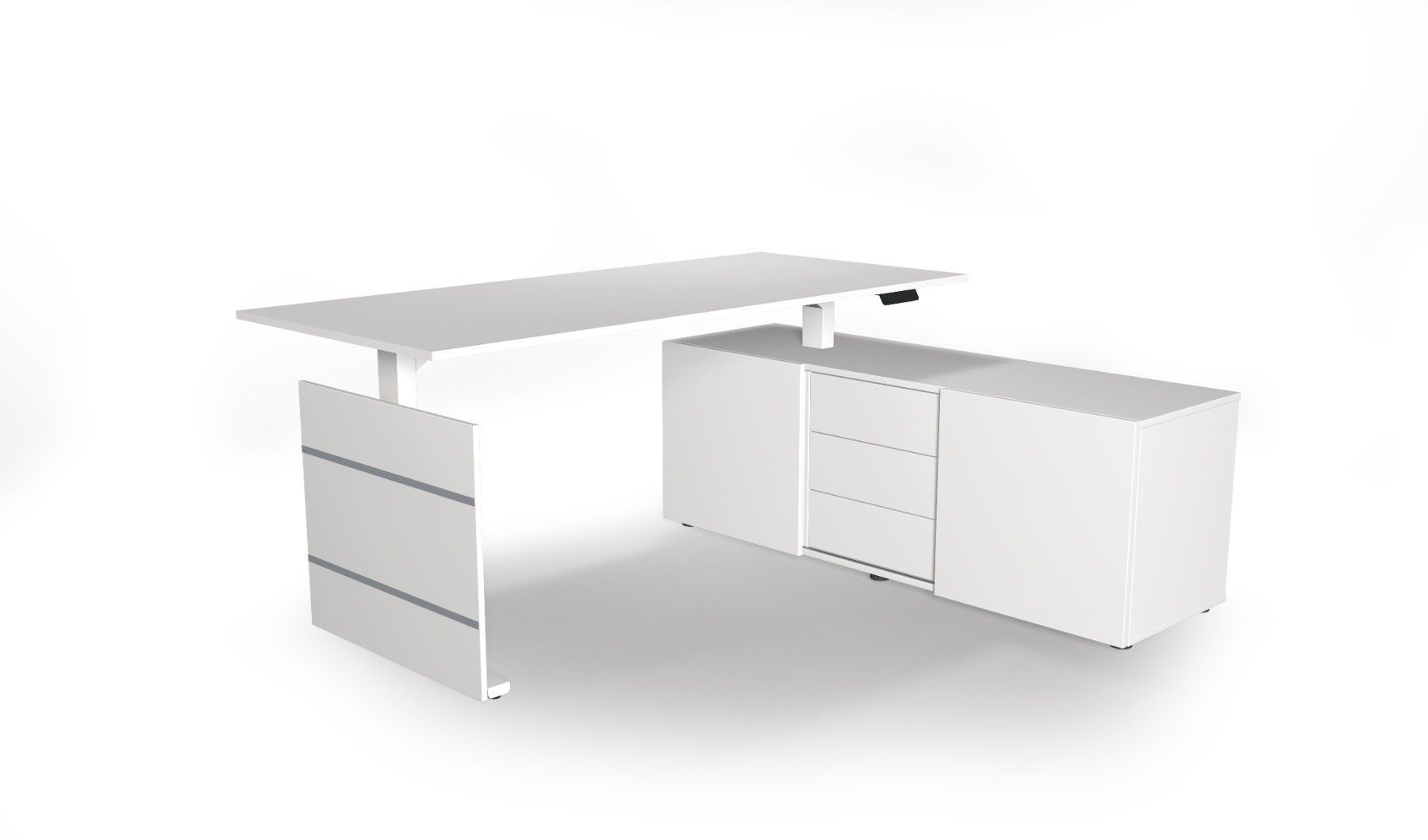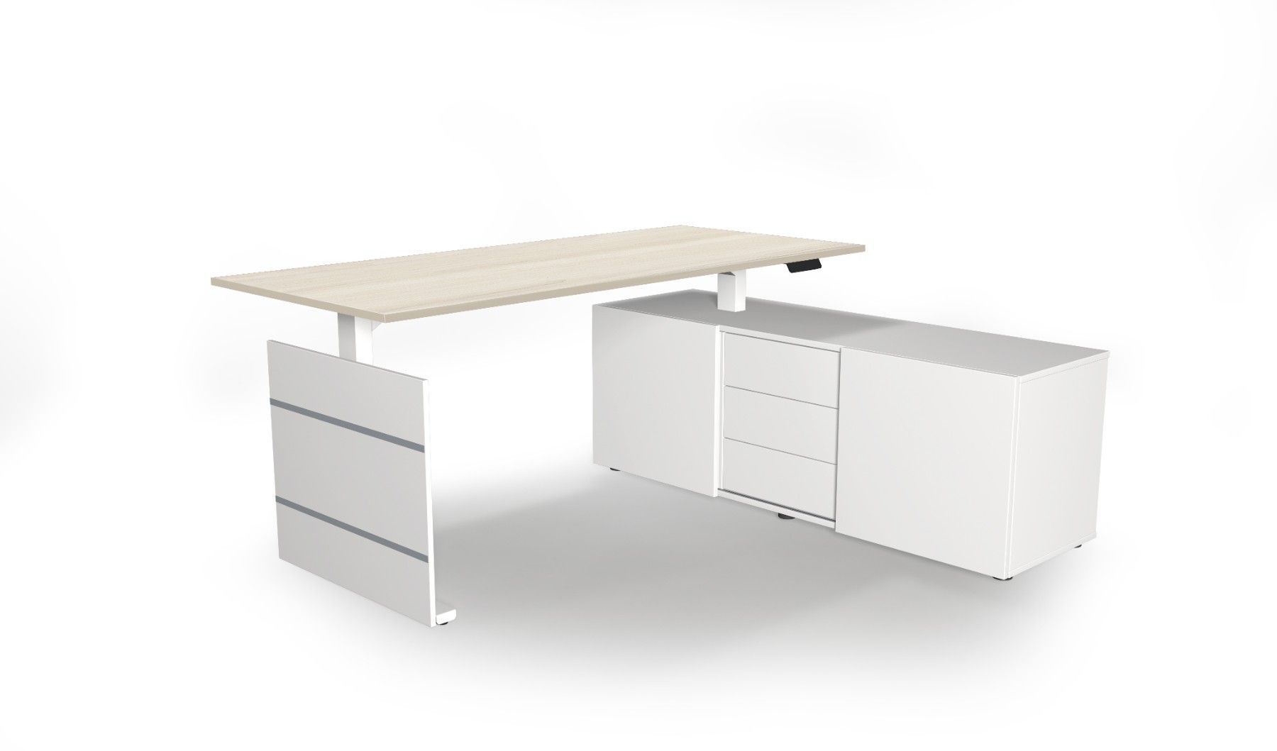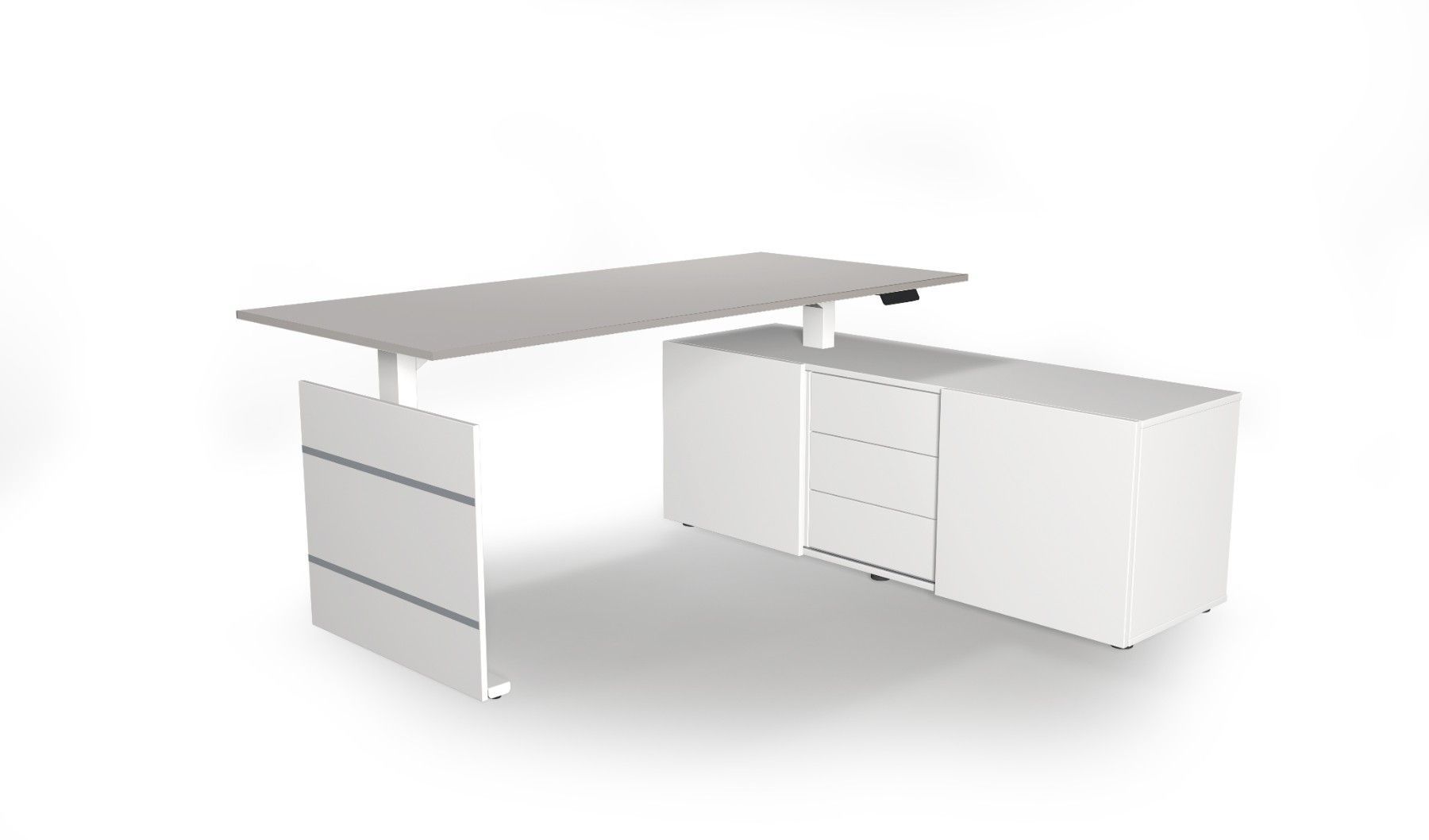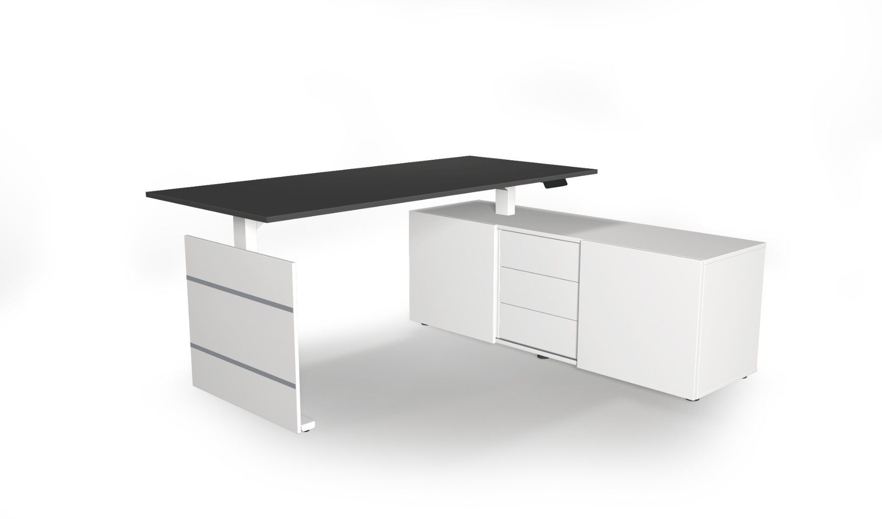 Schreibtisch Updown 3 elektrisch höhenverstellbar 180x80 72-120cm mit Sideboard