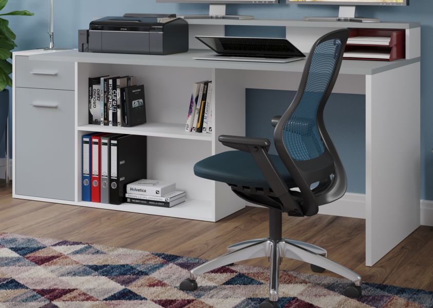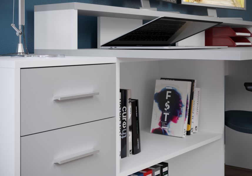 trendteam Schreibtisch weiß grau Eckschreibtisch Laptoptisch mit viel Stauraum Gamer 160-200 cm